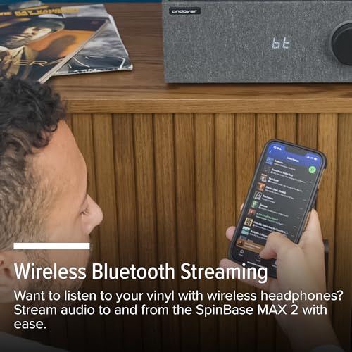 TWO-WAY BLUETOOTH STREAMING: Stream your favorite playlists directly from your smartphone, tablet, or computer with built-in Bluetooth. The SpinBase MAX 2 not only receives Bluetooth audio but can also transmit wirelessly to Bluetooth-enabled speakers or headphones, giving you complete flexibility in how you listen.