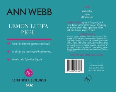 Ann Webb Lemon Luffa Peel – Lemon Glycolic Mask -All Natural Fruit Enzyme Brightening Face Mask w/Fruit Acids & Antioxidants Brightens Dull Complexion, Exfoliates & help w/Hyperpigmentation. (6oz)