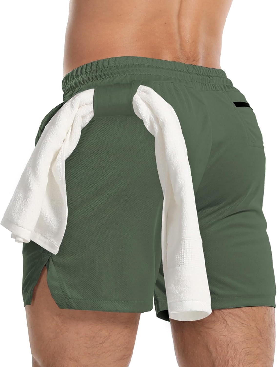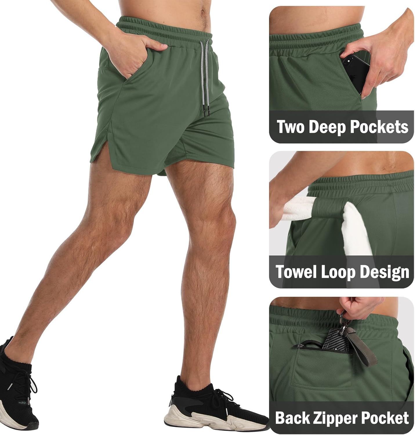 Aolesy Men’s Gym Workout Shorts 5″/7″/10″ Lightweight Bodybuilding Athletic Shorts Running Training with Zip Pockets