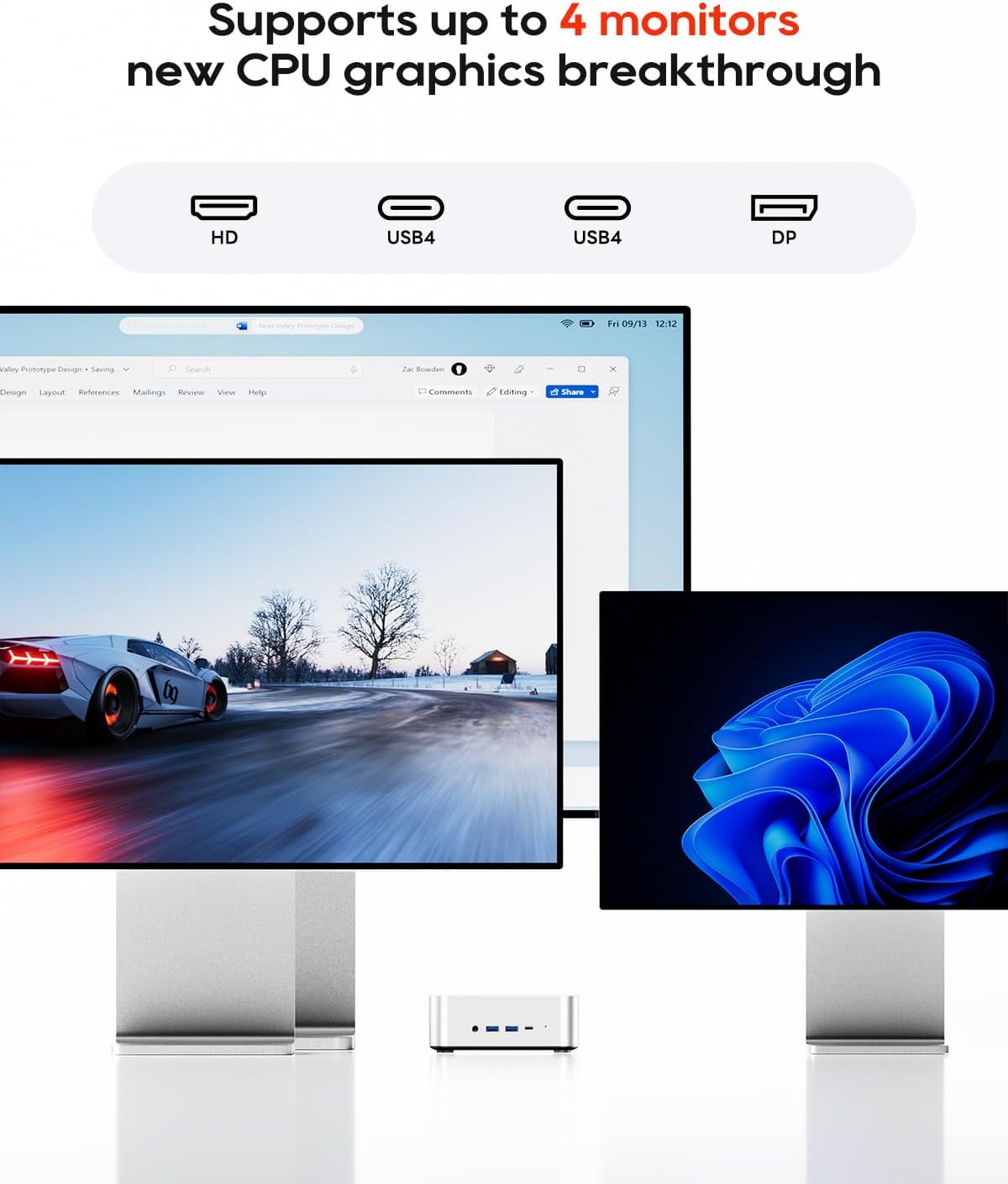【Four Display & Efficient Operation】MACO 8945HS Mini PC allowing it to be compatible with various peripherals and allowing you to better handle various application scenarios. can support perfect visuals 4K and connecting up to 4 screens, The complete functions can display simultaneously and asynchronously to meet special requirements, Improve productivity & efficiency by 400%!