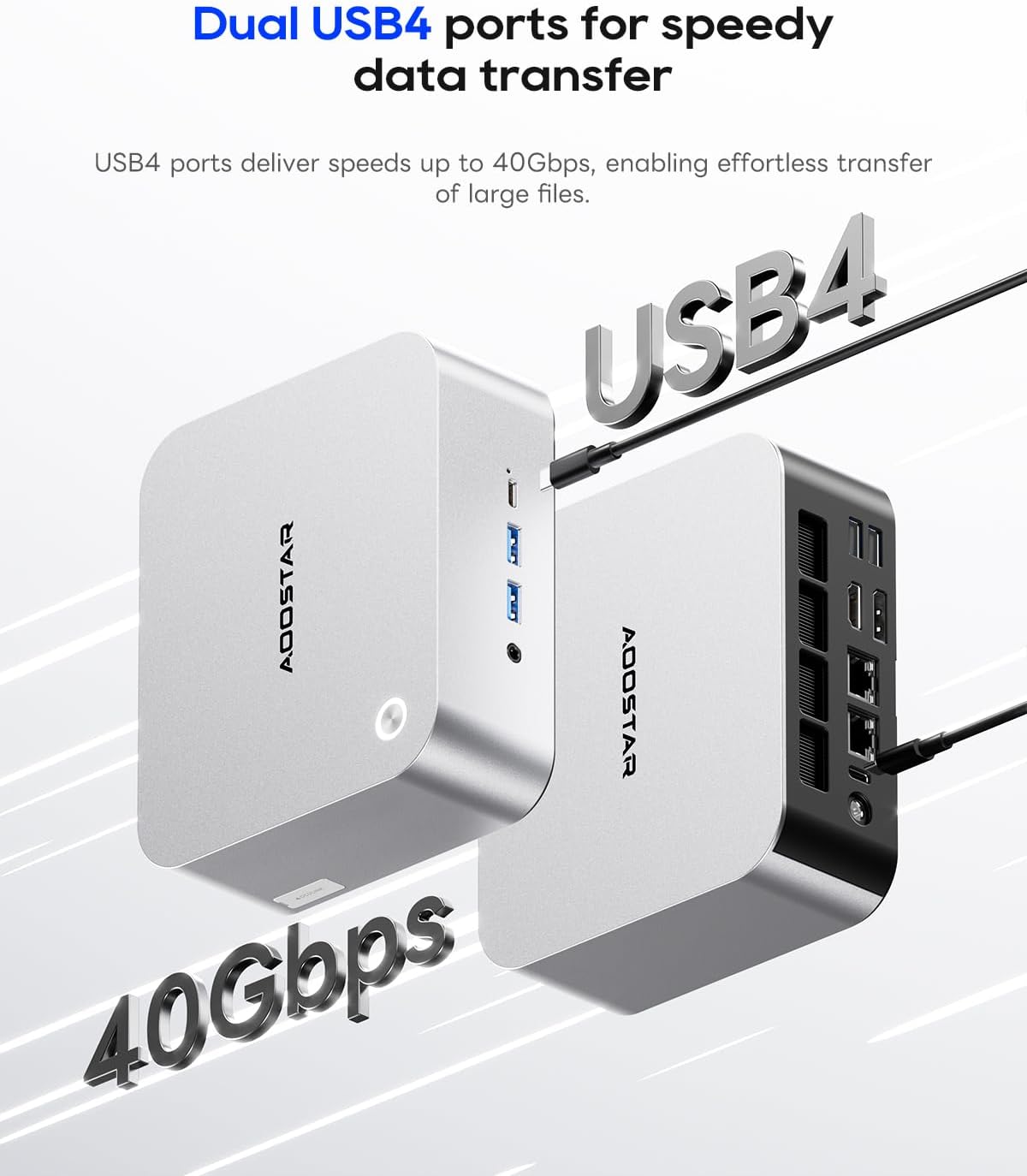 【Multiple interfaces for all needs】The MINI Computer has multiple interfaces: OcuLink*1, USB4*2, USB3.2 Gen2*2, USB3.0*1, USB3.0*1, HD*1, DC*1, DP*1, Jack*1, 2.5G*2, allowing it to be compatible with various peripherals and allowing you to better handle various application scenarios.