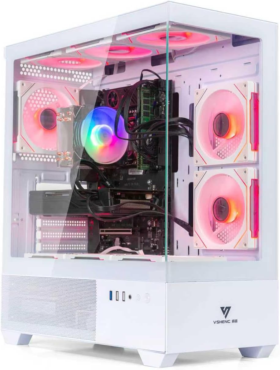 This EVOUNIC white gaming desktop combines powerful performance with sleek design. Featuring a high-speed CPU, RTX graphics, and advanced ARGB cooling, it’s built for gamers who want both power and style.