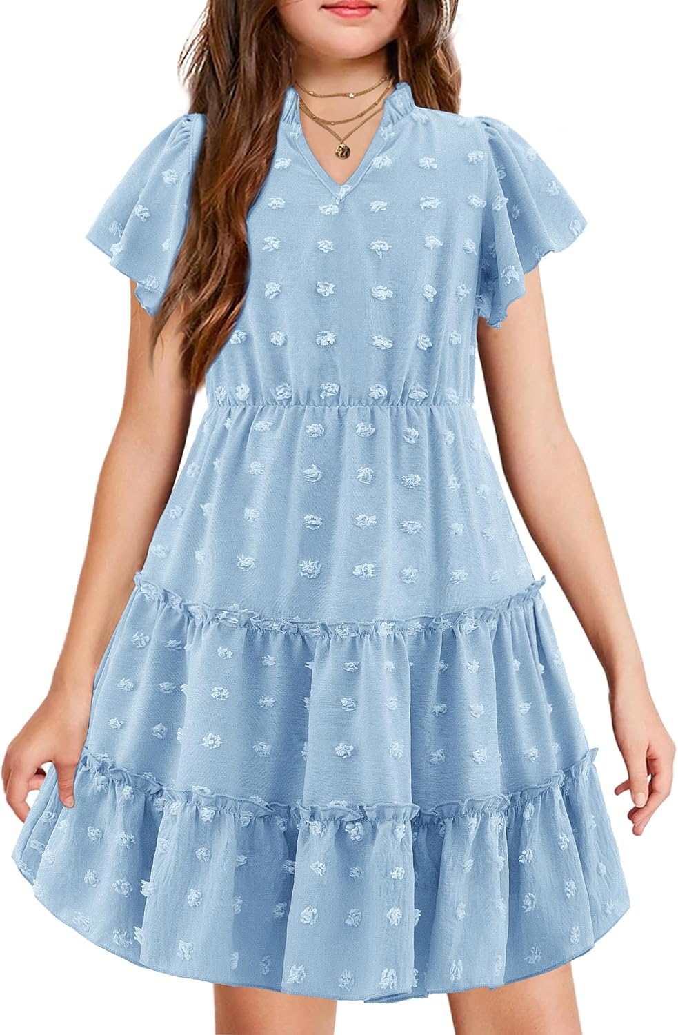 Arshiner Girls Summer Elegant Ruffle Sleeve Casual Dresses with Swiss Dot