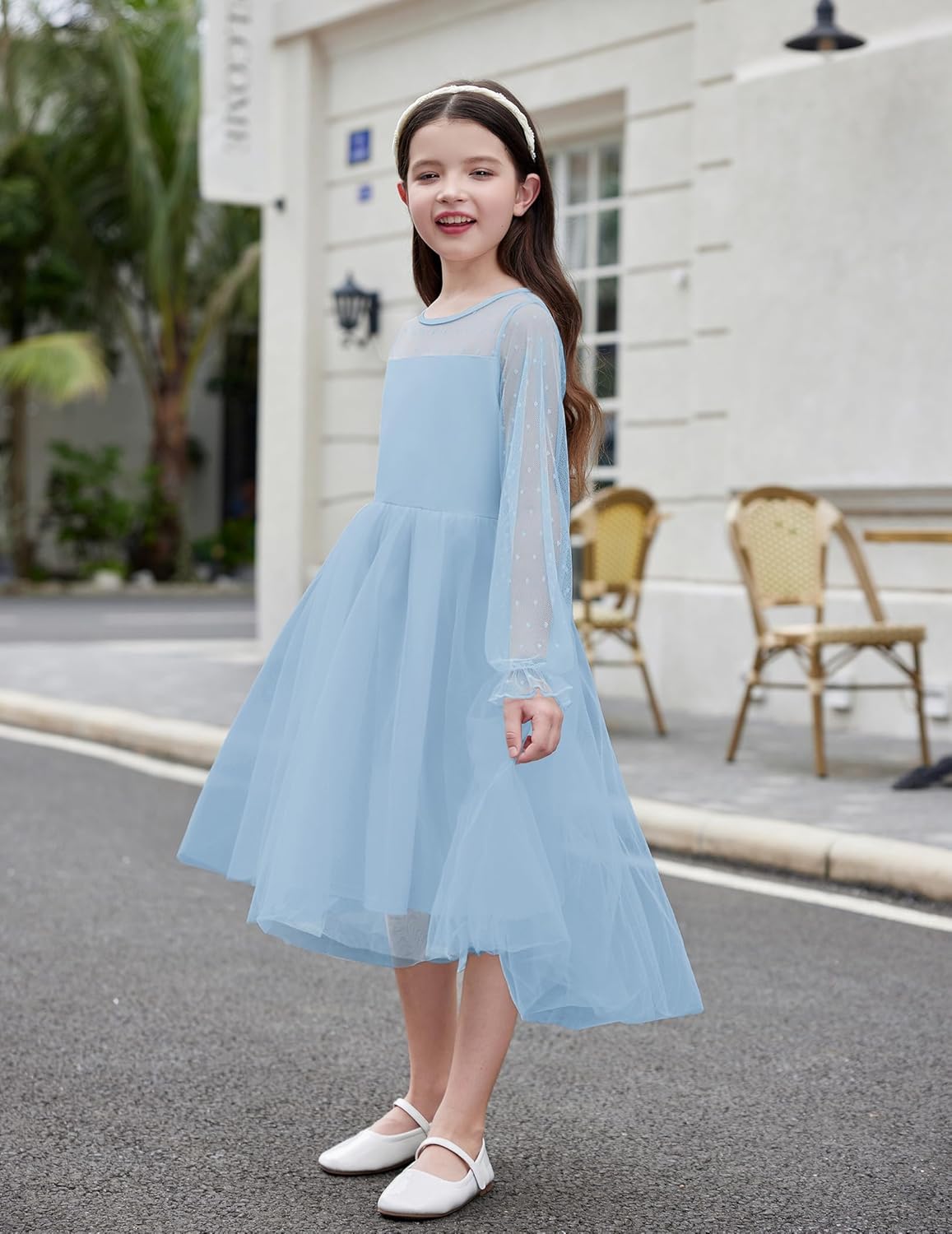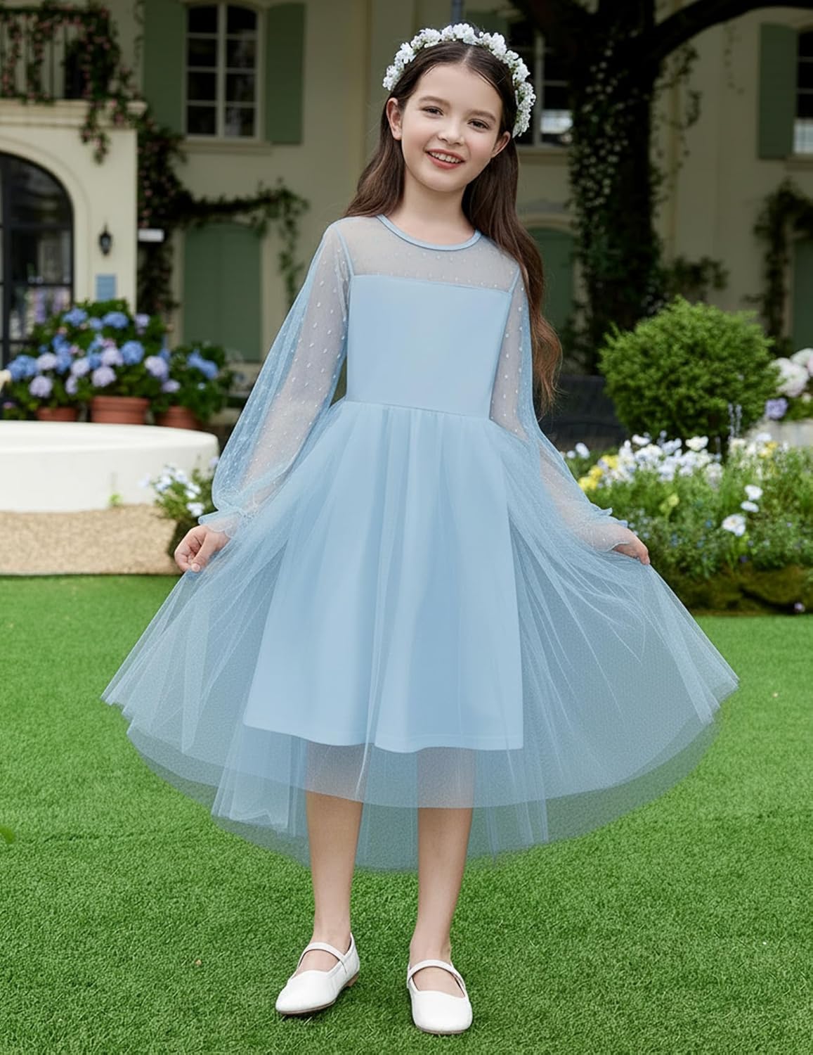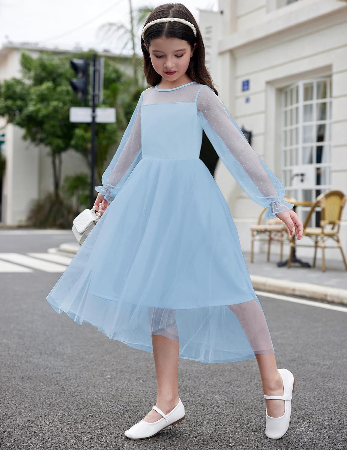 Arshiner Girls Dresses Contrast Mesh Long Sleeve Twirly High Low Birthday Party Formal Dress