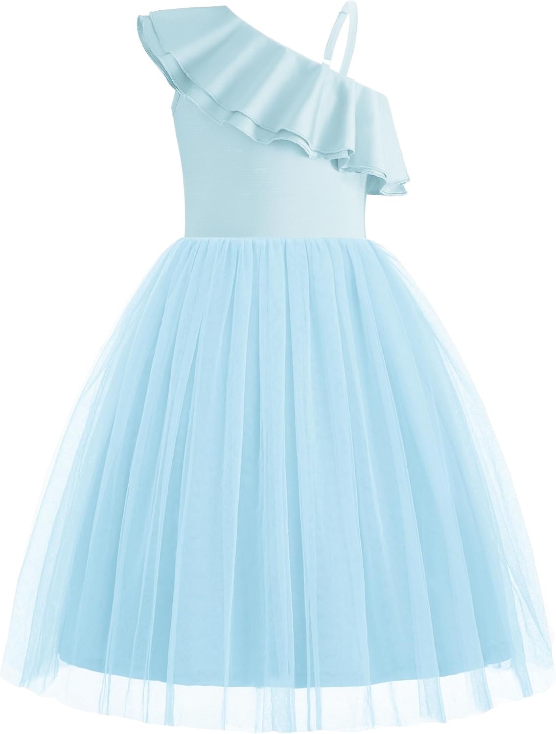 Girls one shoulder sleeveless dress features an adjustable strap, ensuring a better fit without the worry of slipping