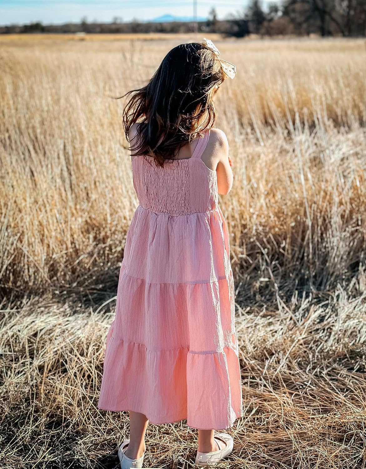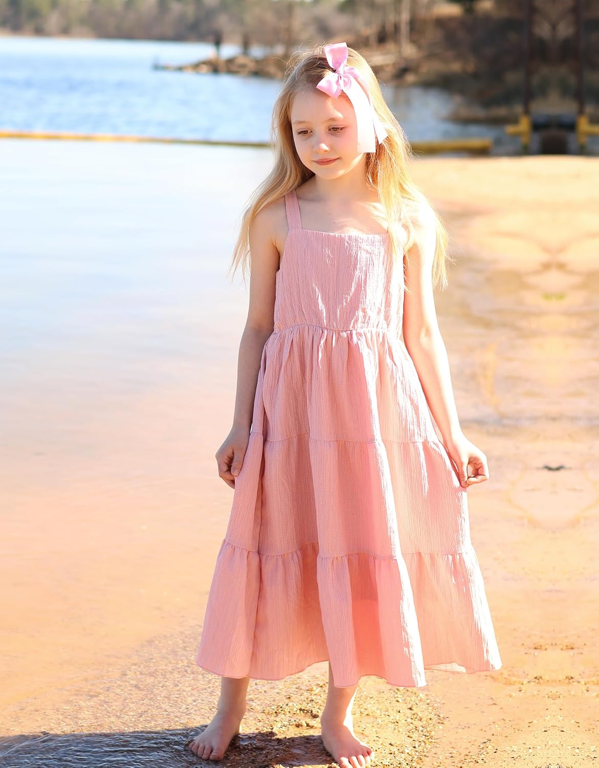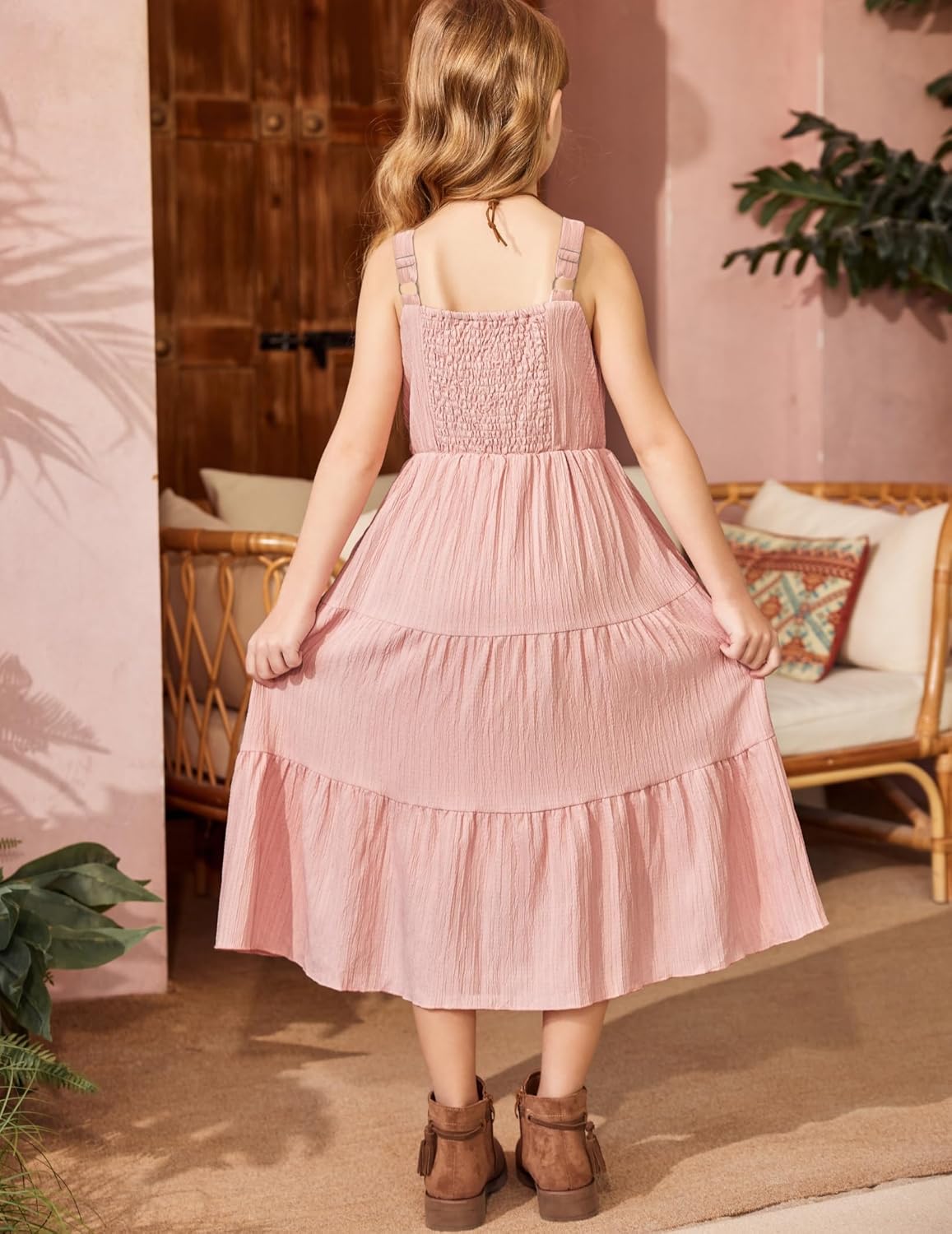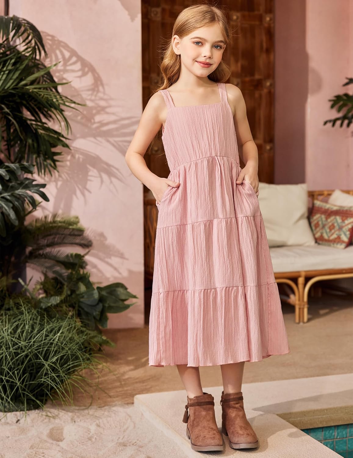 Arshiner Girl’s Sundresses Summer Boho Strap Tiered Cami Maxi Dresses with Pockets