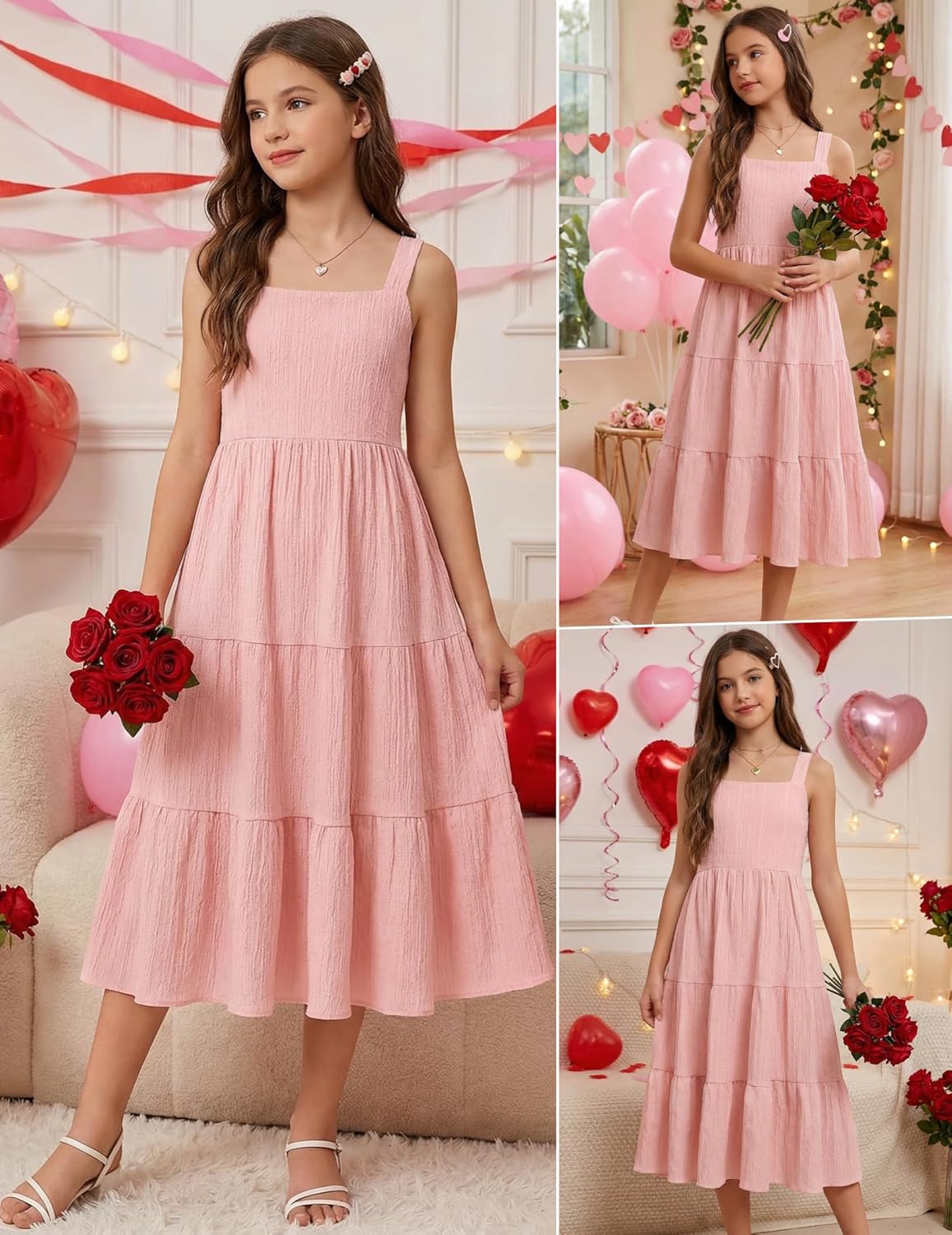 The video showcases the product in use.The video guides you through product setup.The video compares multiple products.The video shows the product being unpacked. Girls Summer Sundress Merchant Video