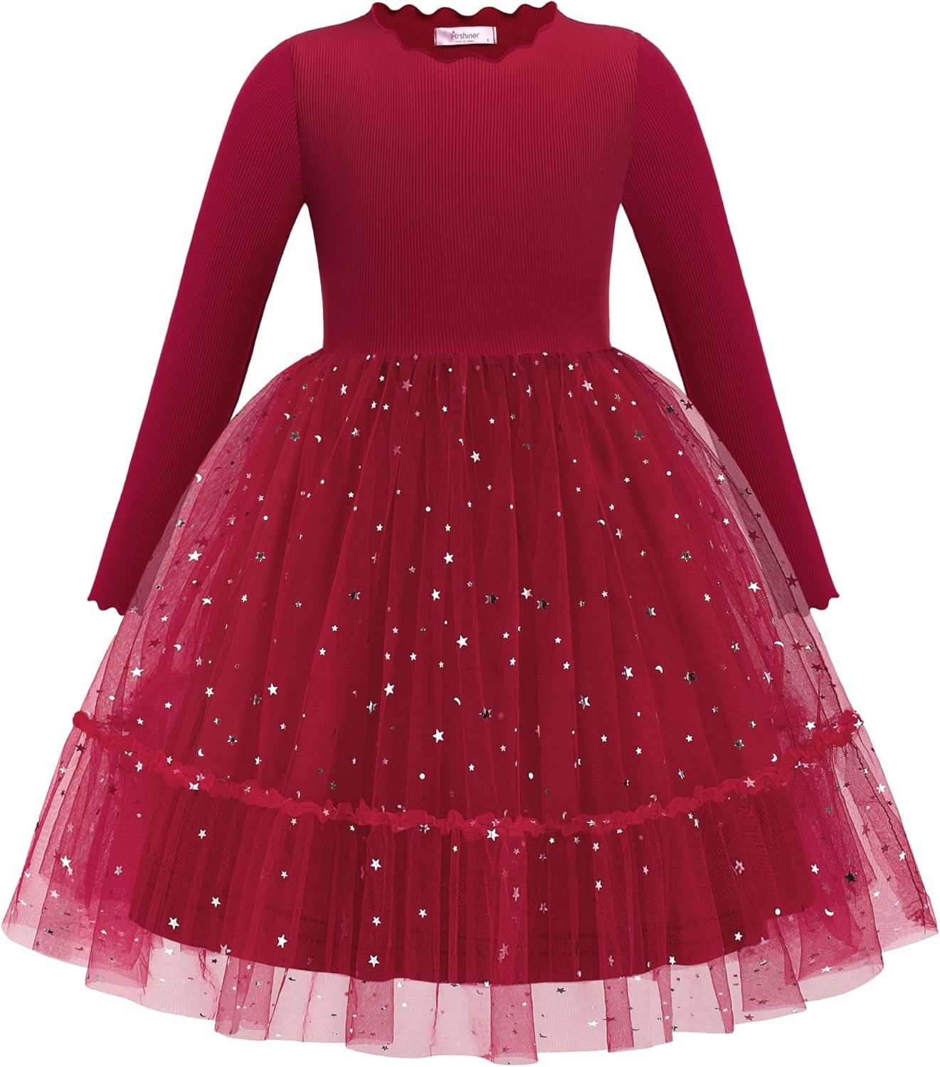 Arshiner Toddler Girl Tutu Dress Fall Winter Long Sleeve Star Sequin Holiday Party Tulle Dresses 2-6Y