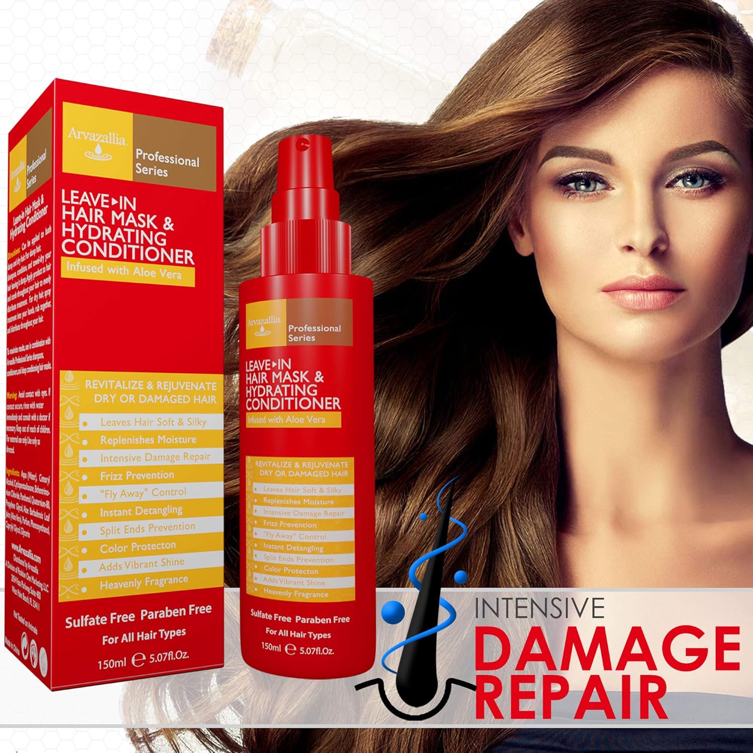 Arvazallia Leave-in Hair Mask and Hydrating Conditioner Spray for Dry or Damaged Hair – Professional Grade Leave-in Conditioner and Moisturizer