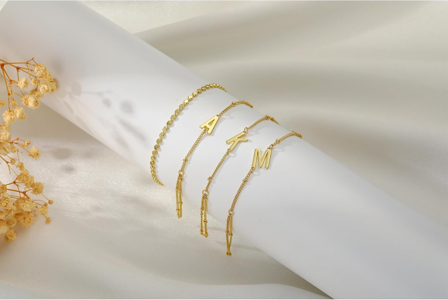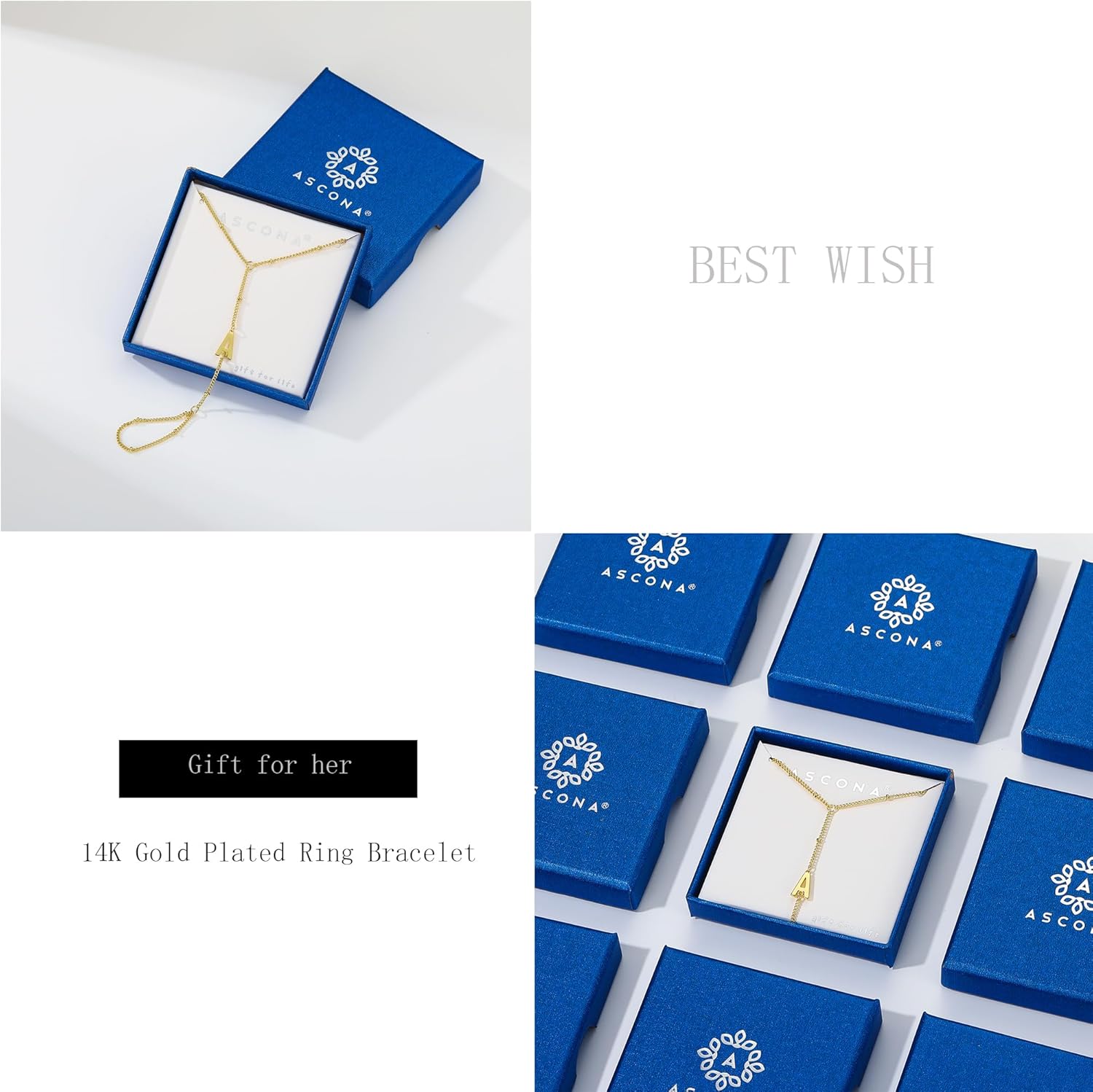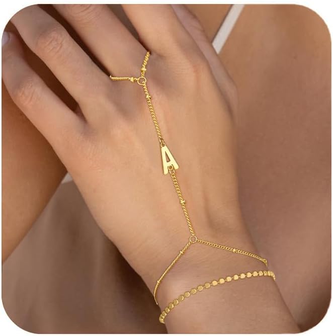 Ascona Valentines Day Gifts for Her Initial Hand Chain Bracelet for Women-14K Gold Plated Ring Bracelet Hand Chain for Women Trendy,Dainty Letter A-Z Link Charm Stack Bracelets Set Jewelry Gifts