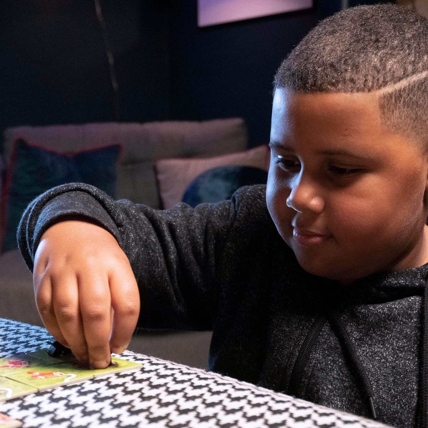 DISCOVER THE GREAT CITY OF CARCASSONNE, ONE TILE AT A TIME! The streets of Carcassonne are filled with kids who are trying to catch the animals set loose for the festival. The city has never been so alive! This version of the modern classic, Carcassonne, has been adapted to allow players of all ages to play together. No need to count points! Each turn, you place a tile to build Carcassonne. When you close a street with one or more kids of your color, you get to put your pawns on the board. Be the first to place all of your pawns to win the game.