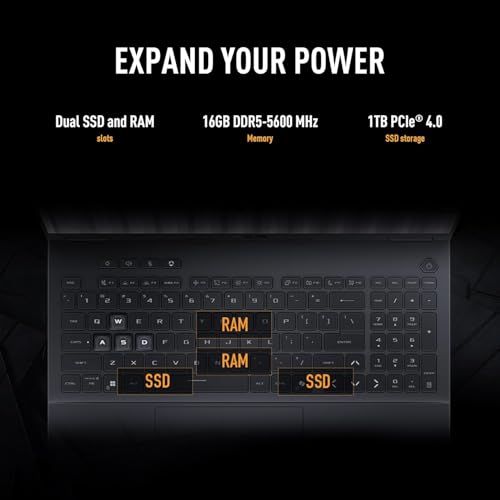 Immersive 16 inch Display: Featuring a 165Hz FHD+ 1920×1200 IPS panel with 100% sRGB color coverage, anti-glare surface, and NVIDIA G-SYNC, the ASUS TUF Gaming Laptop provides sharp details, fluid motion, and comfortable viewing for long gaming sessions.