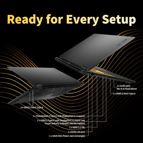 🔌 Robust Connectivity — The ASUS TUF Gaming F16 laptop offers versatile ports for every scenario, including RJ45 LAN for stable networking, Thunderbolt 4 with DisplayPort, USB 3.2 Gen 2 Type-C with G-SYNC support, three USB 3.2 Gen 2 Type-A for peripherals, and HDMI 2.1 FRL for high-resolution external displays
