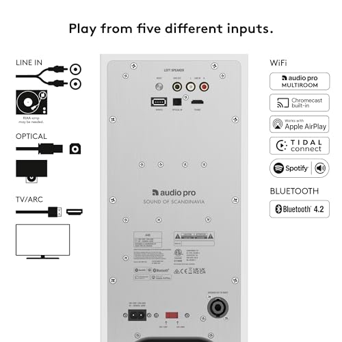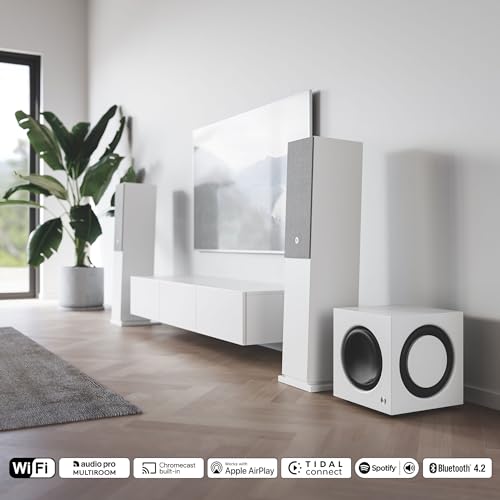 Audio Pro A48 Speakers – Wireless, Premium HiFi Sound, Wireless Surround Sound System for TV, MultiRoom, WiFi – Home Theater, White