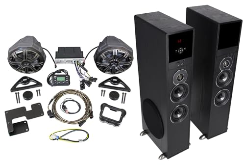 Audiosavings Bundle (1) 2015-2018 Can-Am Spyder F3 Bluetooth Receiver+Kicker Speakers+Mounting/Wire Kits Bundle with (1) Rockville TM80B Black Home Theater System Tower Speakers (Items 2) (Items 2)