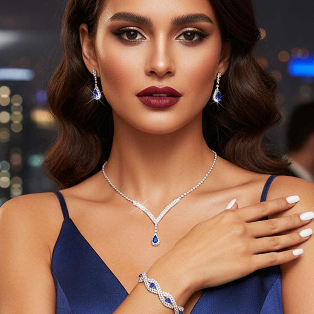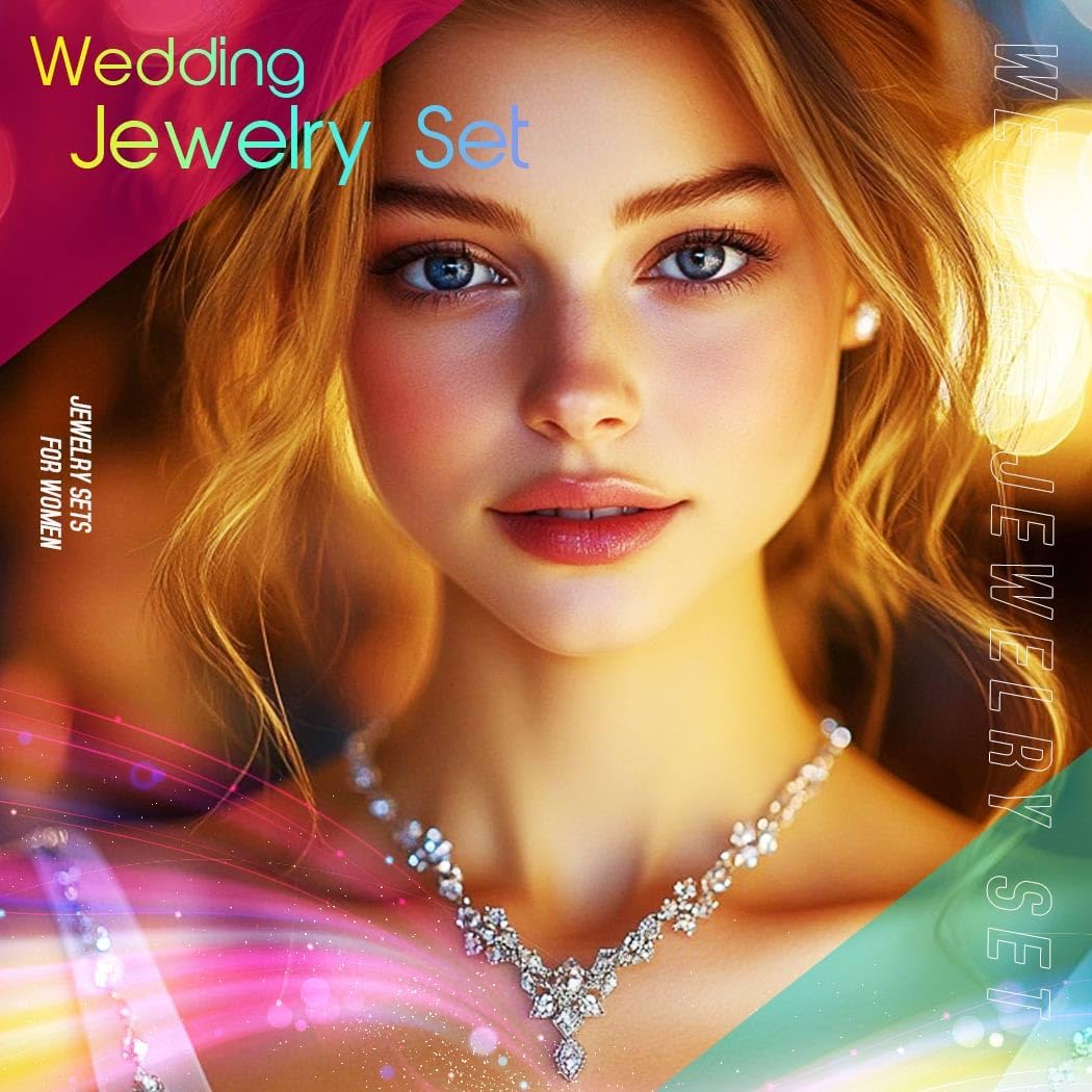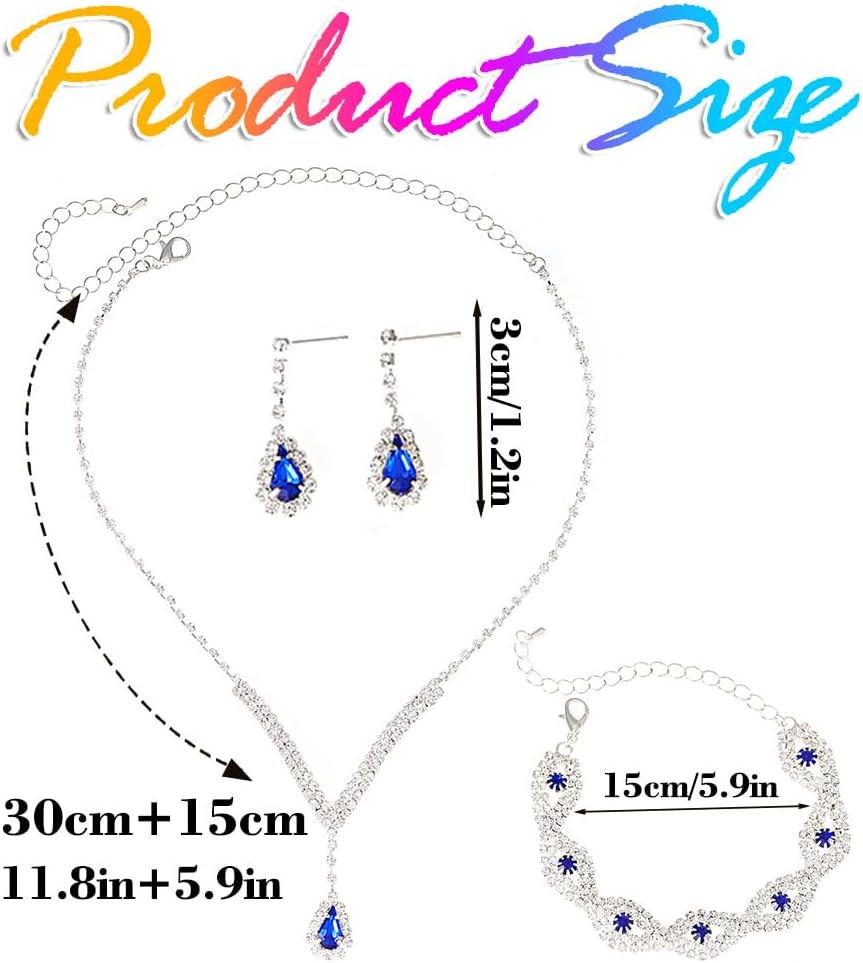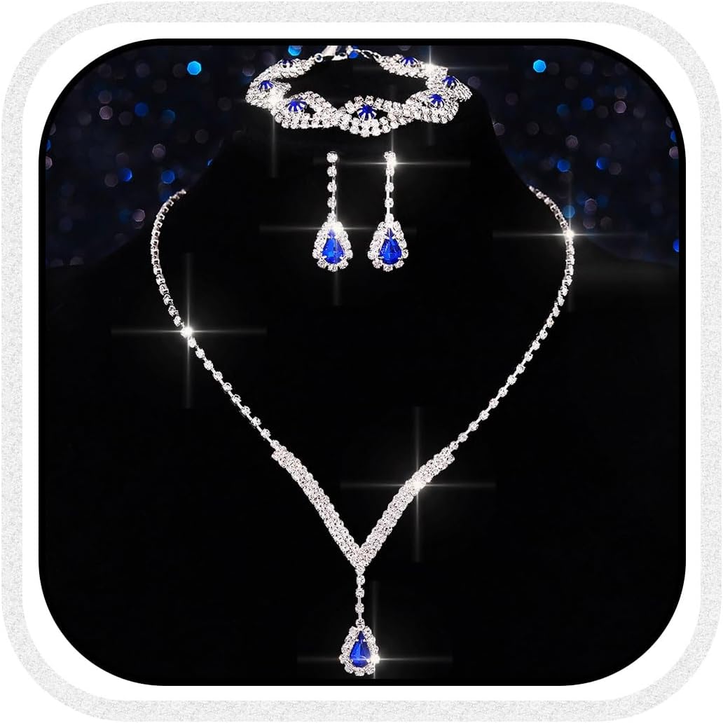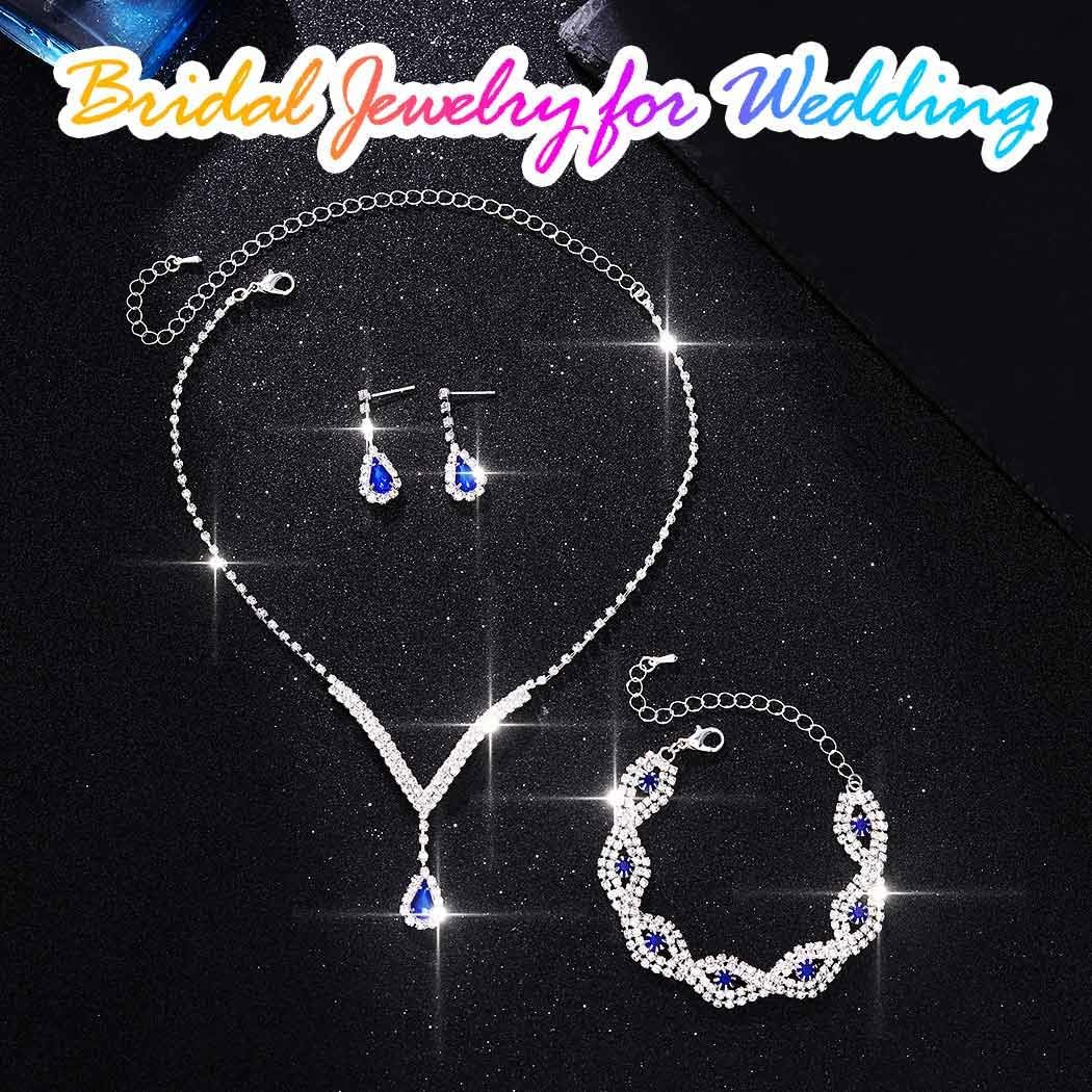 Aukmla Bridal Wedding Jewelry Set Rhinestone Necklace Earrings Bracelet Sets Crystal Prom Jewelry for Women and Brides