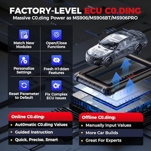 👍【MP900-BT Kit: OE-Level ECU c0ding/Reflash H1dden Functions = MS906 PRO/MS906BT】Have c0ding trouble? Try this scanner automotriz’s Online c0ding: automatically match values, easily restore dada, fix complex ECU issues! (for BM-W, P0rsche, V-W, Nissan, Nissan-GTR, 1nfiniti, Hy.undai, etc.) Reflash personalized functions, make general model be deluxe that most automotive scanner diagnostic tools cannot do. **The coverage / accuracy are far beyond the reach of other car diagnostic scanners.