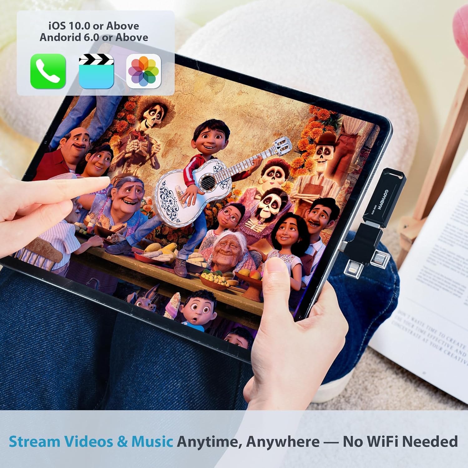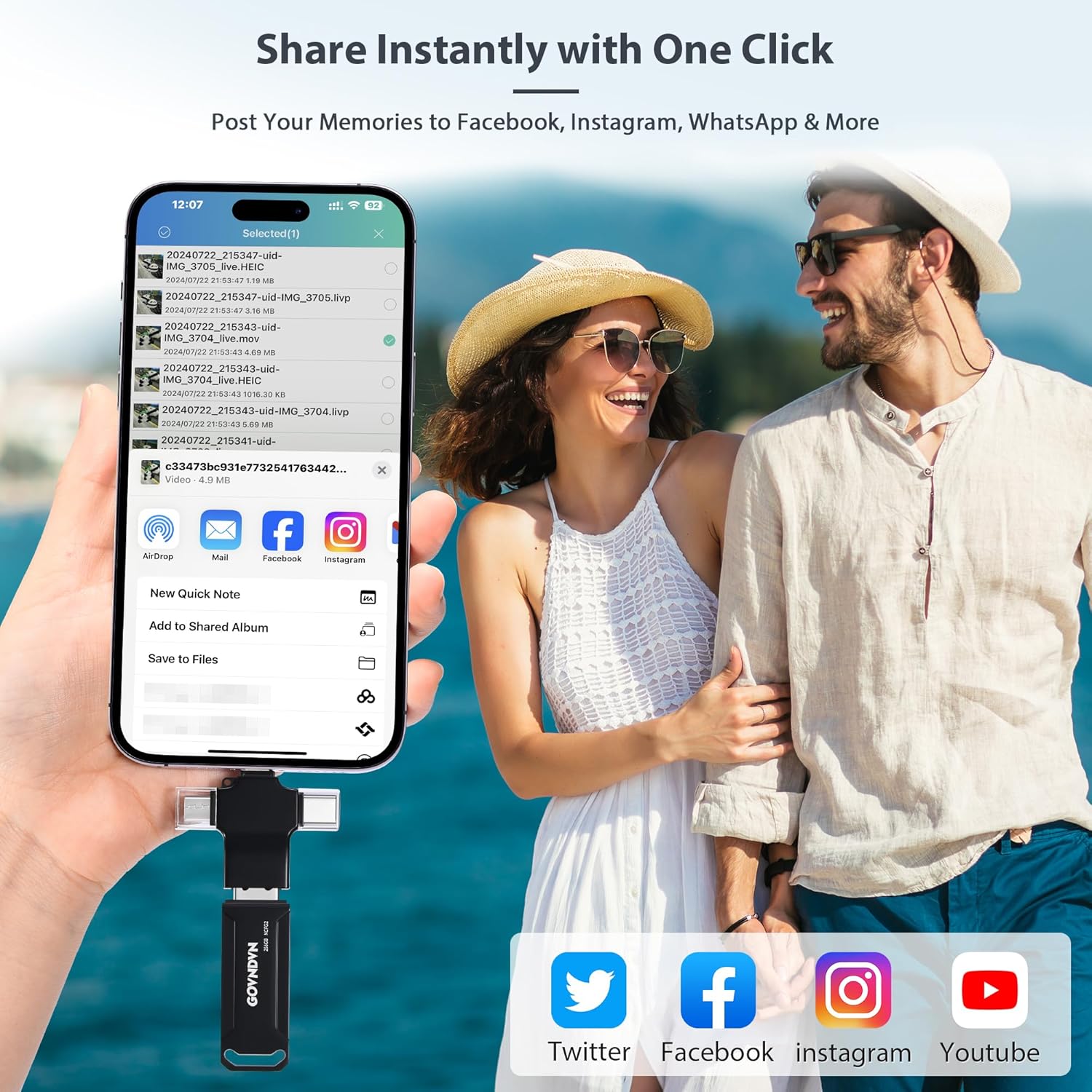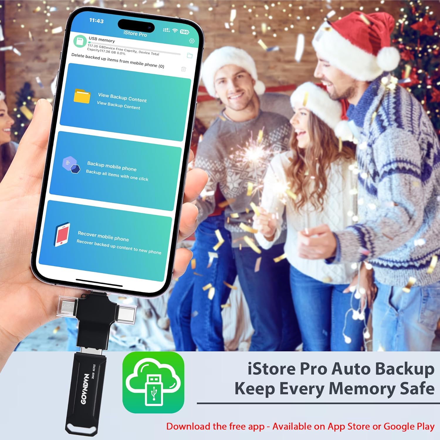 🎄🎁 Automatic Backup for All Devices — Simple & Stress-Free: The GOVNDVN photo stick is an iPhone backup flash drive that automatically backs up photos, videos, and contacts across iPhone, iPad, Android, Mac, and Windows PC. With Lightning, USB-C, USB 3.0, and Micro USB connectors, one USB drive protects all your devices — fully offline with no cloud or subscription. Simply plug in the photo stick to start iPhone photo backup and secure photo and video storage effortlessly.