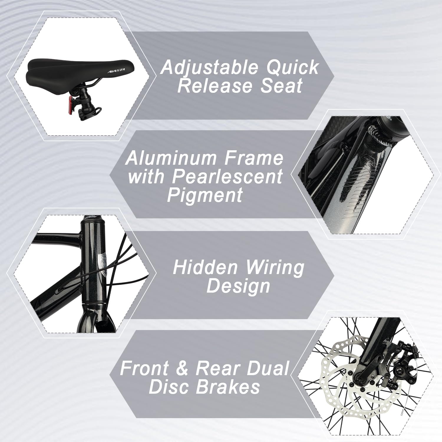 🚴♂️【Durable Aluminum Alloy Frame】This lightweight yet strong frame is built to last, offering a perfect balance of durability and ease of handling, ideal for all types of riders.