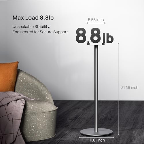 【Military-Grade Stability】31.5-inch silver aluminum alloy stand (11.8″ base/5.55″ top) with 11.8″ anti-slip rubber feet, supports 8.8lb (4kg) ThunderBeat. Four-point design (300mm base + 141mm platform) prevents tipping even during bass vibrations, UL-certified anti-tip tested.