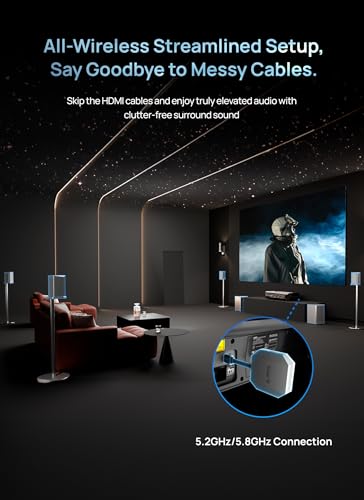Revolutionary 4.2.2 All-Wireless Immersive Cinema System: Enjoy a 4.2.2 wireless surround system with quad subwoofers, dual surrounds, and 4 AMT tweeters. Supporting Dolby TrueHD and Atmos, it delivers theater-quality sound with no complex wiring—set up in minutes for an immersive experience.