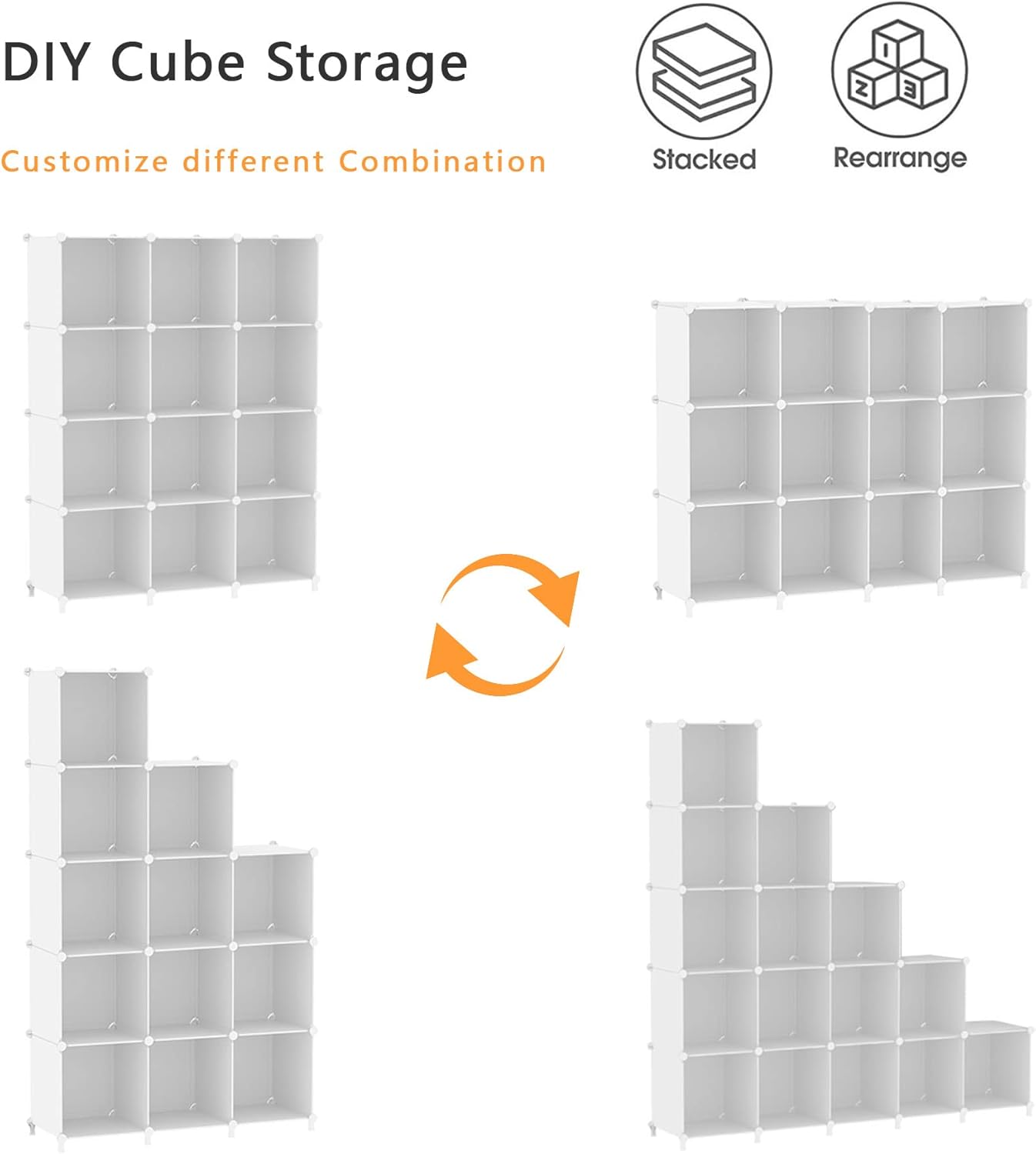 Custom Shape: DIY design allows you to assemble the cubes in different combinations to fit in the limited space and add the cubes to meet your increased storage needs any time