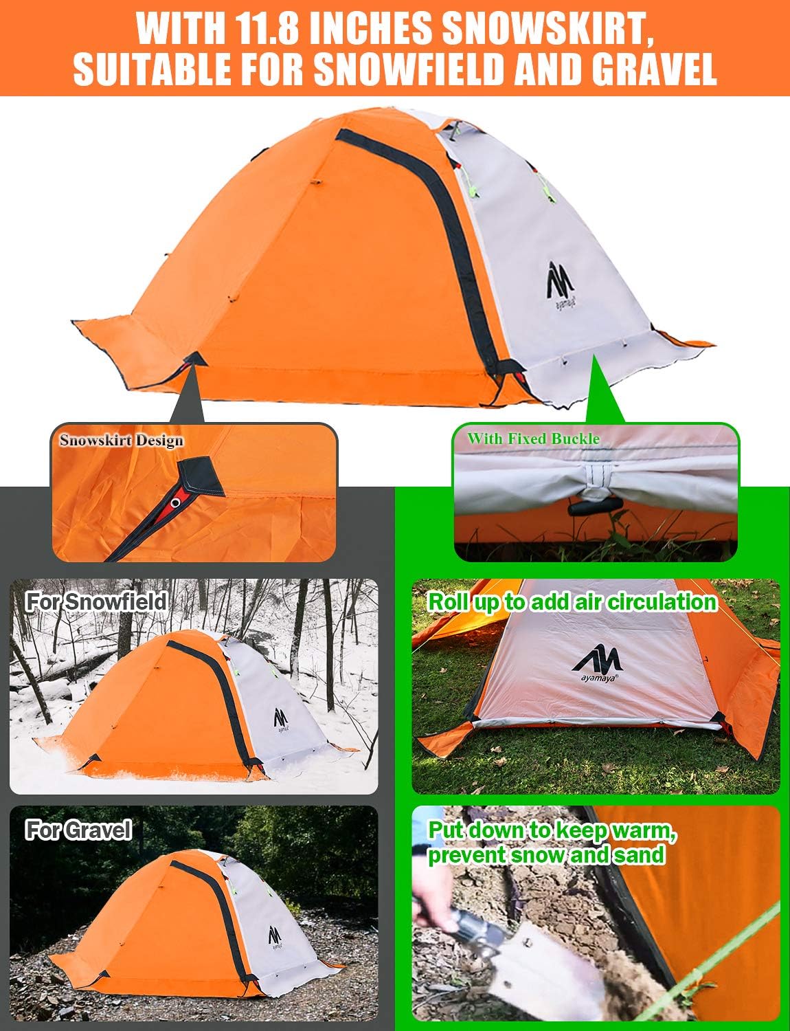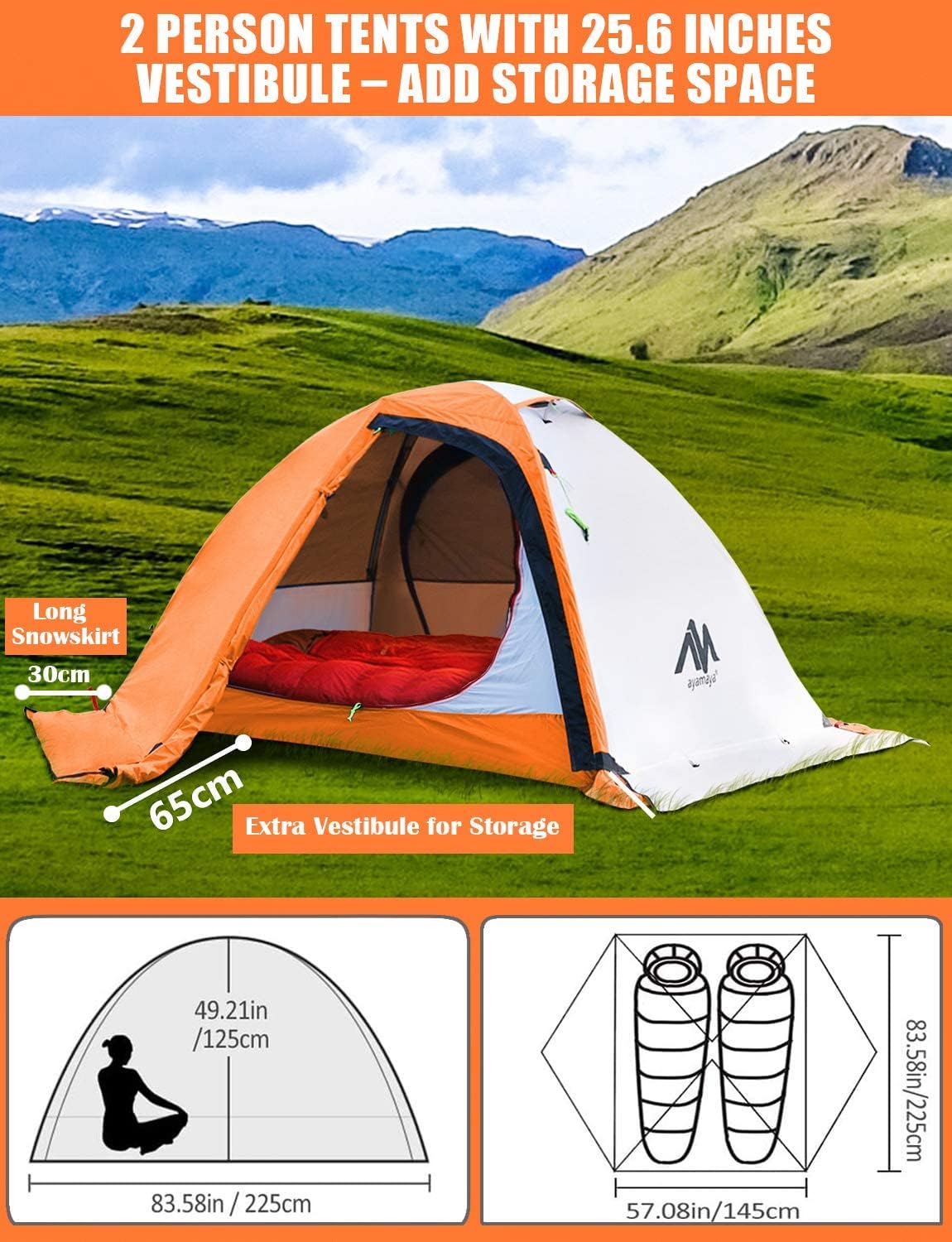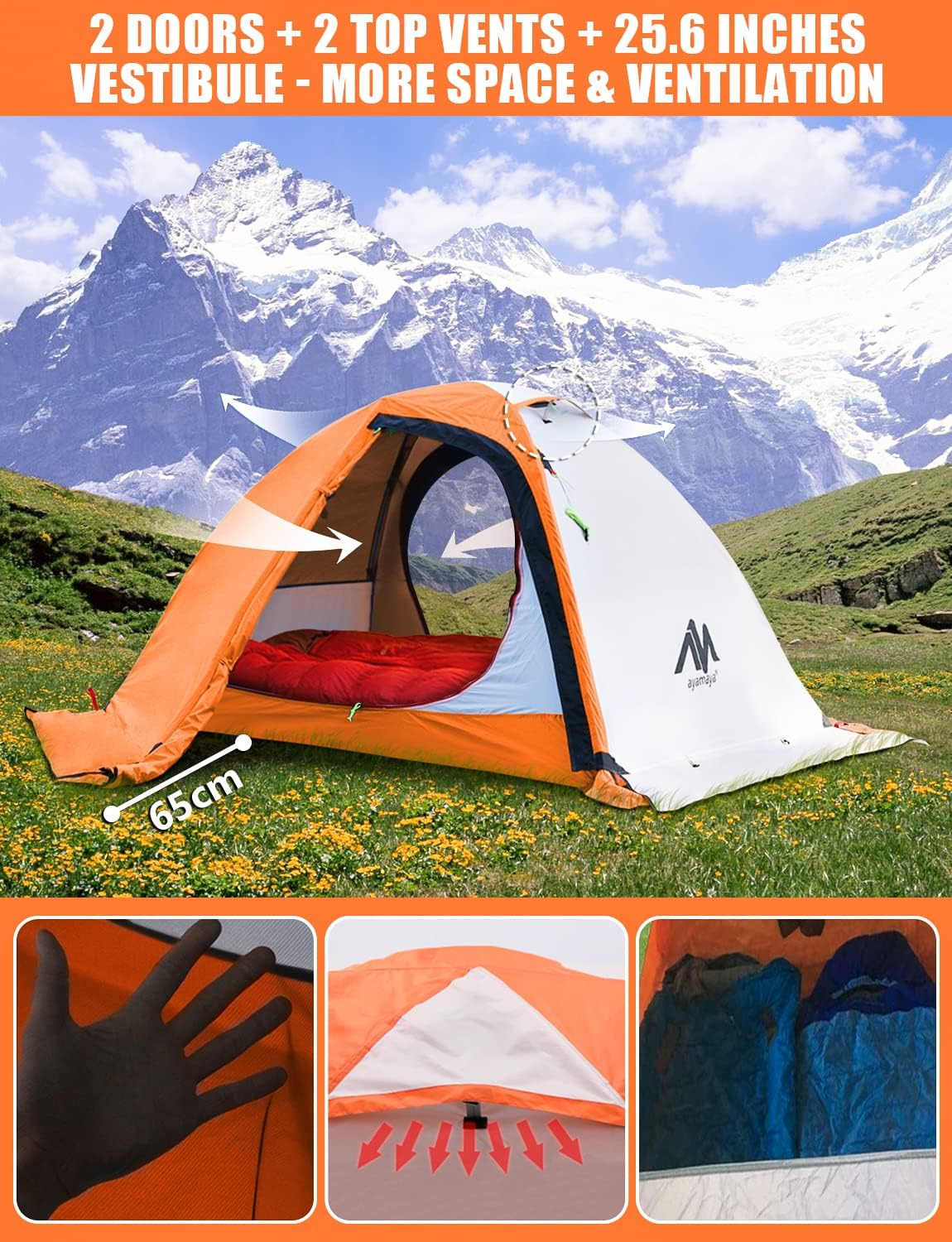 AYAMAYA 4 Season Backpacking Tent 2 Person Camping Tent Ultralight Waterproof All Weather Double Layer Two Doors Easy Setup 1 2 People Man Tents for Backpacker Outdoor Hiking Survival