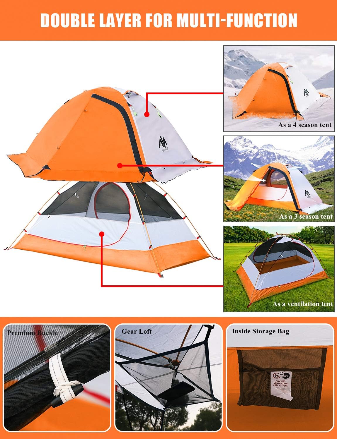 This is a Double Layer Tent for Multi-function: This backpacking tent consists of inner tent and outer rainfly. Inner and out layer superpose together as a weatherproof backpacking camping tent for windy or rainy days. Inner layer also can be used alone as a ventilated tent. Outer layer also can be used alone as a sunshade. It available for multi-occasion such as backpacking, hiking, expeditions, fishing, kayaking, camping, motorcycle, or bikepacking, etc.