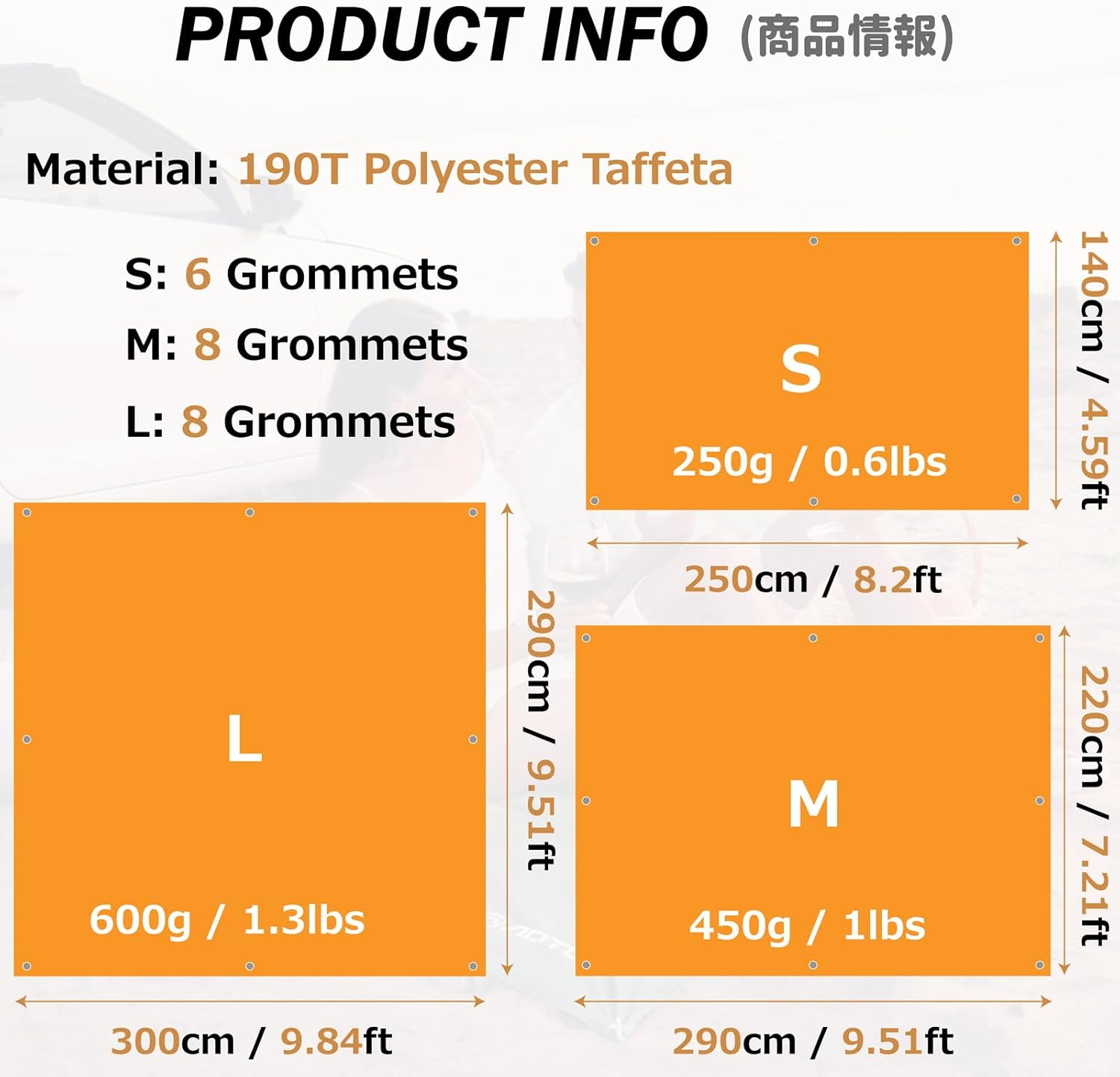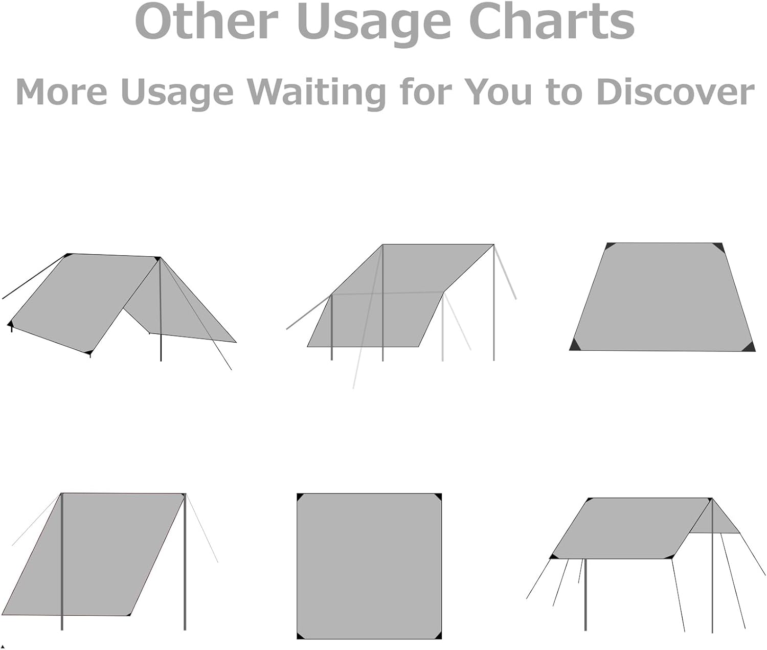 Easy To Use: Unfold the camping tarp and spread it on the ground as the tent footprint; when using it as an awning, use stakes or guylines to fix it through the metal grommet eyelets