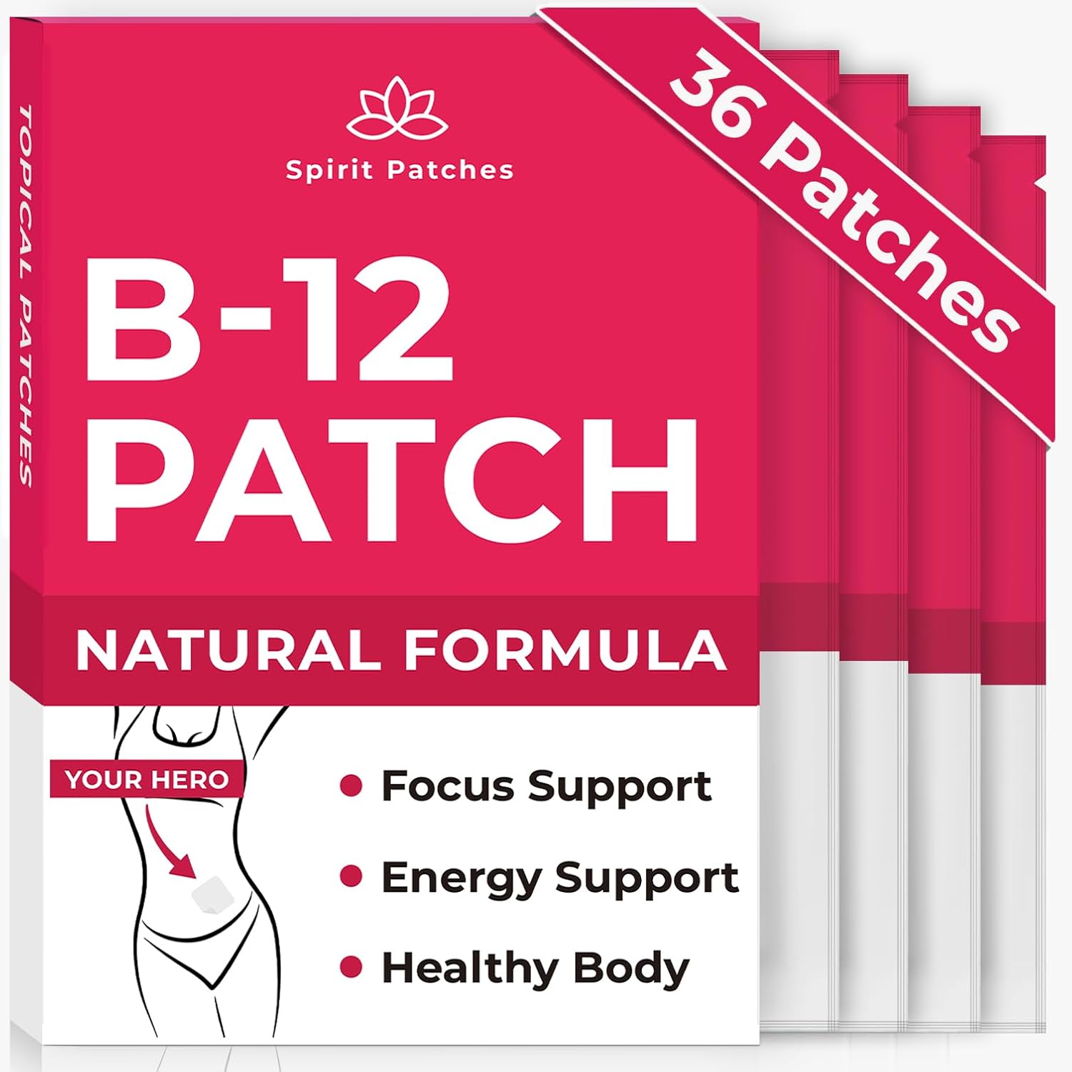 Don’t Wait for ‘Someday’. Start Your Wellness Journey Today With The B12 Patches by Spirit Patches. They will Help you Increase Your Energy Level, Ability to Focus & Improve Your Body Image so You Can Easily Stay On Track To Crush Your Health Goals! Each Patch Is Infused With Natural & Effective Ingredients That Will Take Your Diet to the Next Level. The B12 Patches Are Formlated for Maximum Results. Vitamin B12 for Enhanced Energy and Firming the Muscles, Vitamin C for Strengthening The Immune System and Tightening the Body, Guarana for Improved Mental Focus and Energy, Folic Acid for Mental and Physical Health, Green Tea Extract for Relaxation and Improved Sleep. Peel Off the Patch From the Backing and Apply It Onto Your Skin, Keep It on for 6 Hours. Our Patches Are Formulated in the USA and Use 100% Natural Ingredients. The Patches Bypass the Digestive System Utilizing Transdermal Delivery, That Ensures Your Stomach Won’t Get Upset. The Patches Are Also Latex-Free. The Strong and Skin-Friendly Adhesive Ensures That the Patches Stay On Without Having to Worry About It. They’re Also Waterproof So You Can Wear Them at the Pool or Beach!