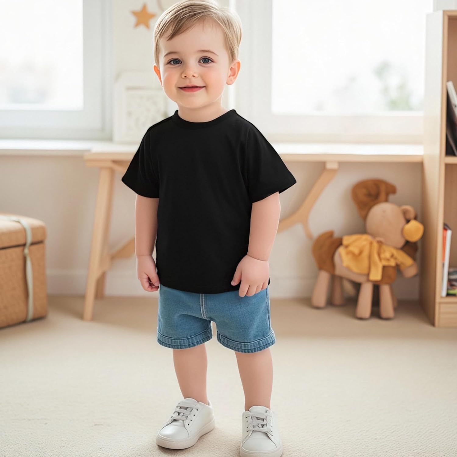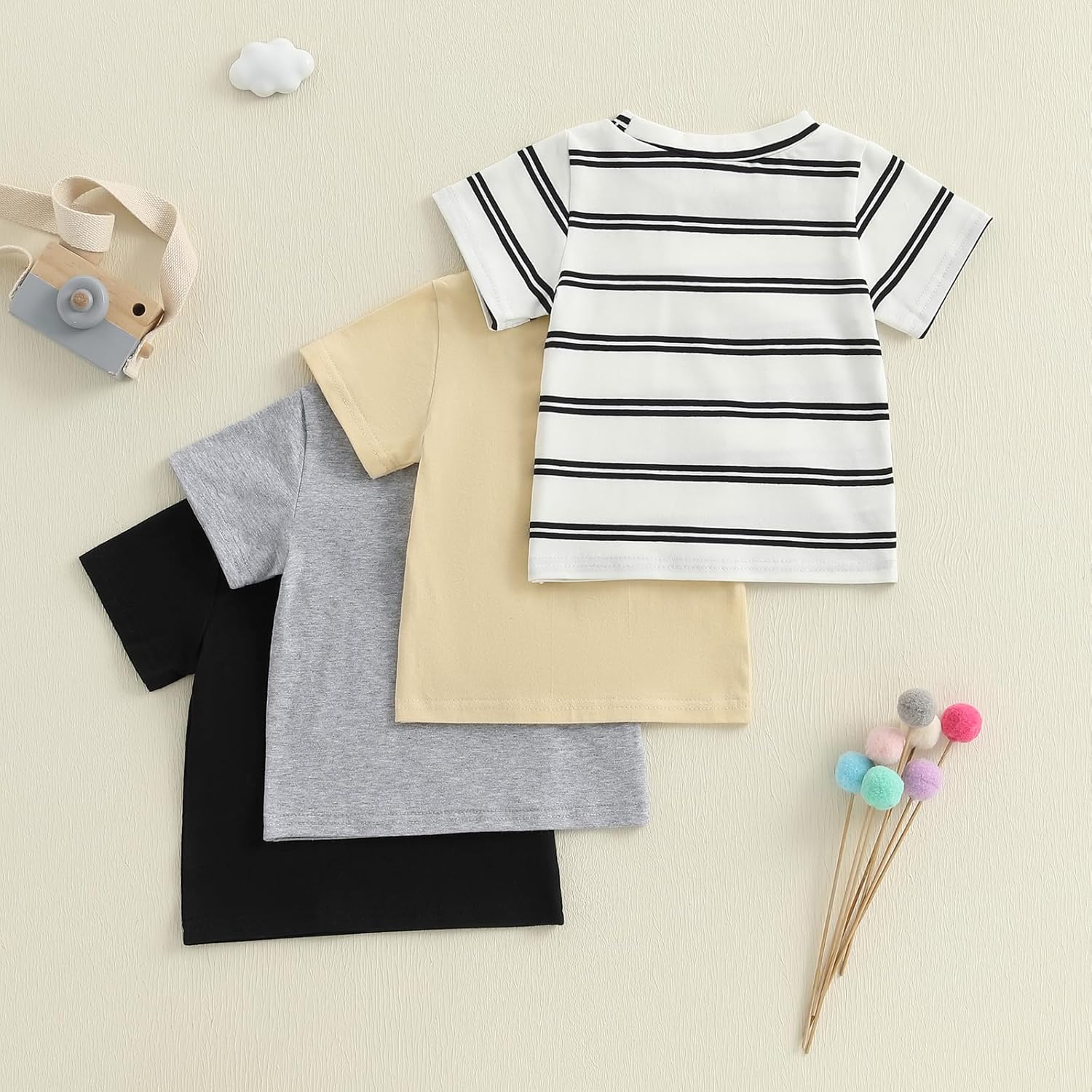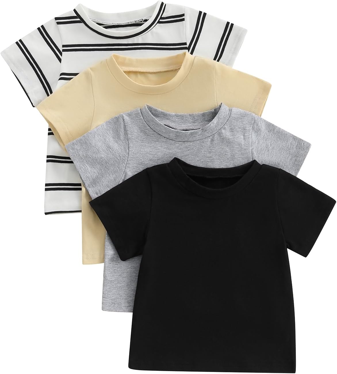 Toddler Baby Summer T-Shirt 4 Pcs Set Loose Fit Solid/Striped Crew Neck Short Sleeve Tops