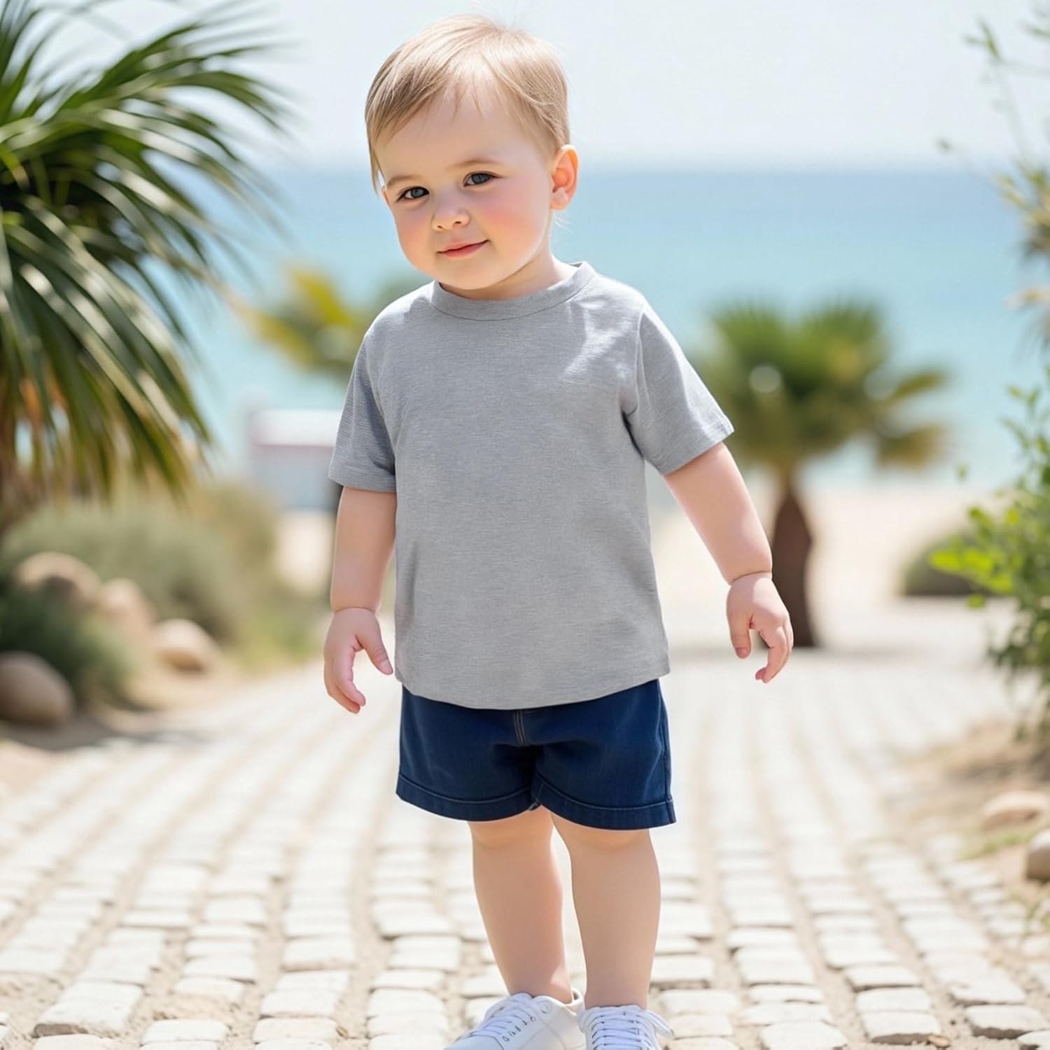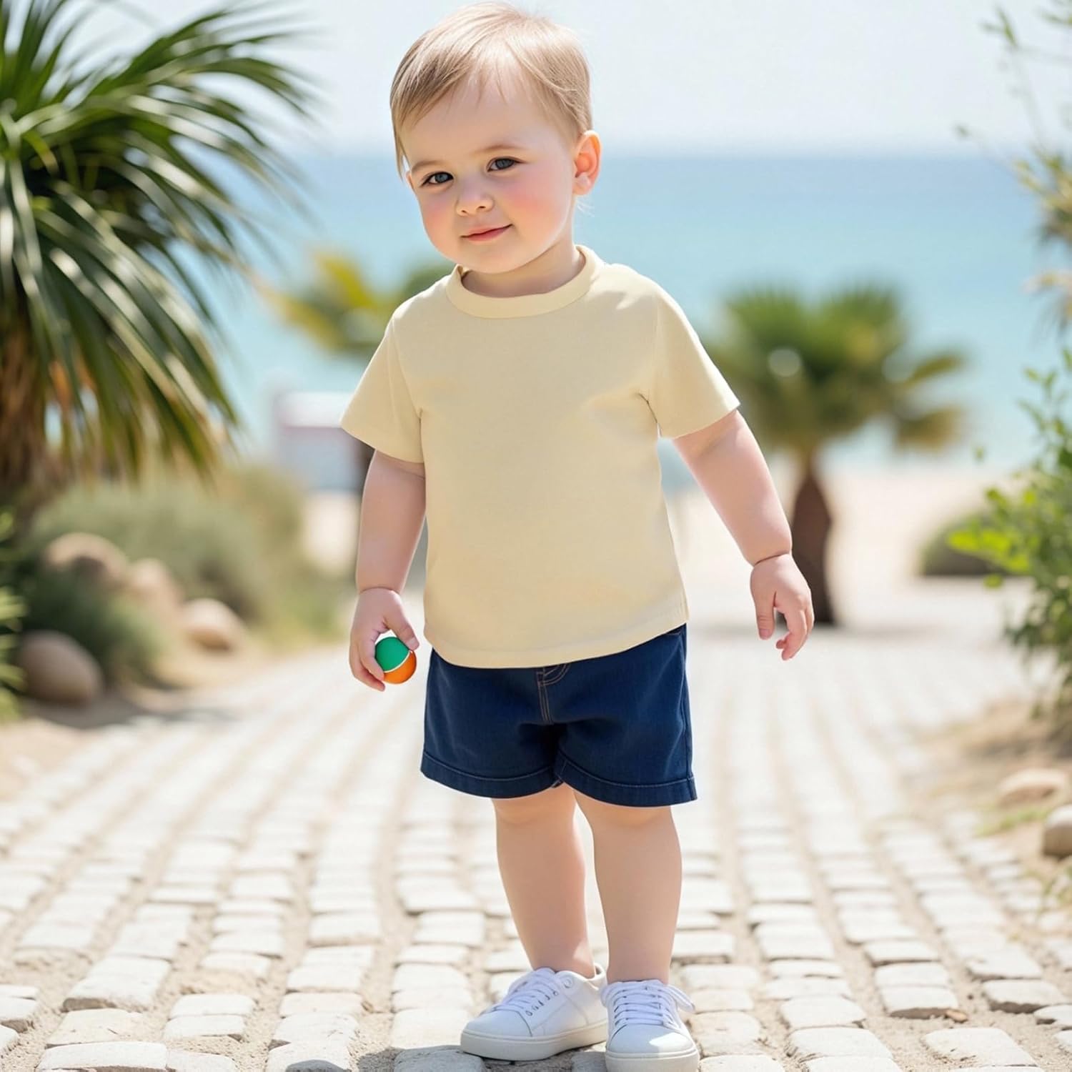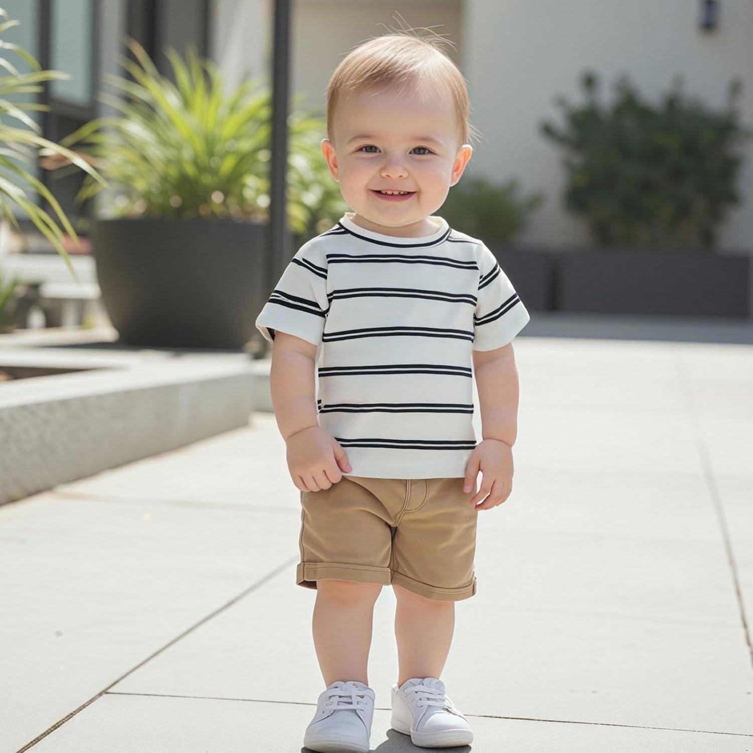 Toddler Baby Summer T-Shirt 4 Pcs Set Loose Fit Solid/Striped Crew Neck Short Sleeve Tops