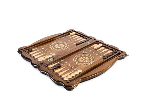 Backgammon Set Large Wooden Board Mother of Pearl Inlay Handmade Sofia Design Special Edition for Adults and Family Game Night – One Size