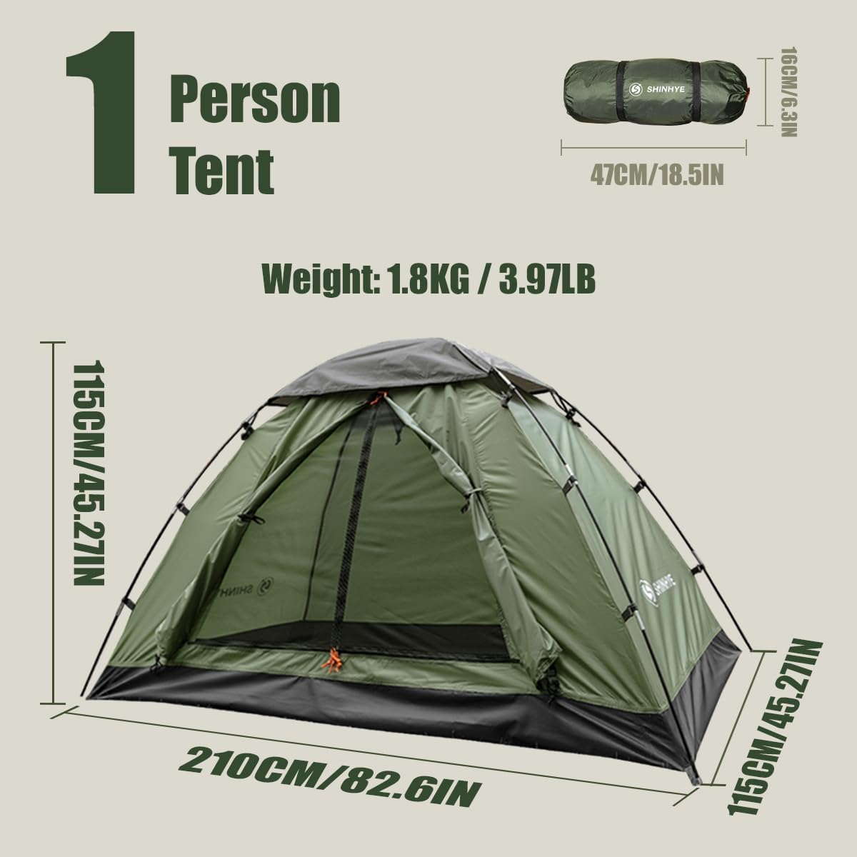 【1 Person & 3 Season Tent】– The tent space is sufficient for adults to use and there is enough space to store backpacks. Before entering the single tent, there is enough space for one people to store shoes. Please note: 1-person tent has 1 door, 1-person tent has 1 doors