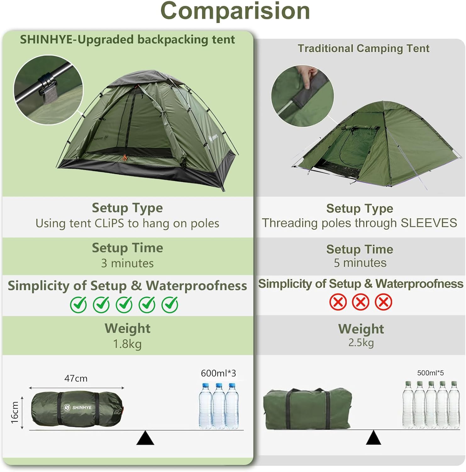 【Lightweight & Portable】–The weight of a single person tent is only 3.9 LBS, and it is very compact after folding and packaging, making it easy to carry. It is the preferred choice for hiking, exploration, fishing, kayaking, car camping, backpacking, cycling