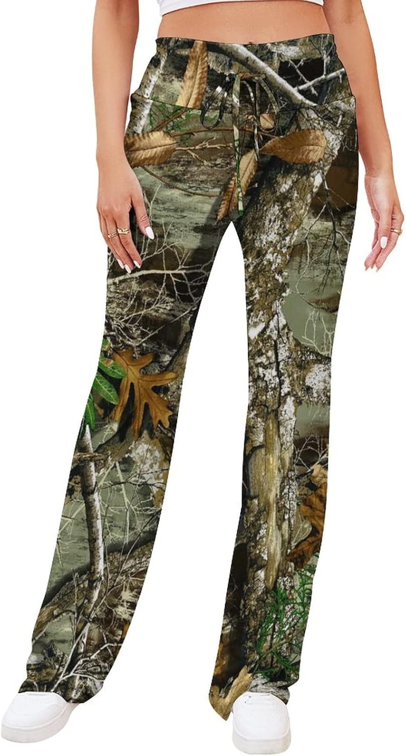 Bagea-Ka Autumn Hunting Tree Camo Pattern Women Yoga Pants Straight Wide Leg Pants Drawstring Casual Loose Sweatpants