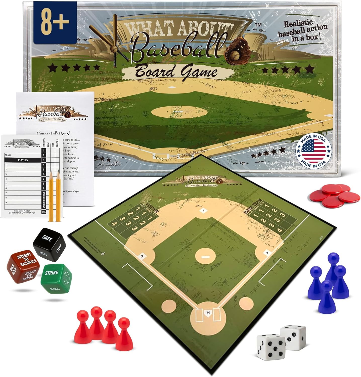 Home Run Heritage – Honor America’s pastime with a baseball board game that’s made in the USA by a family-owned company. All our products reflect Grandma Smiley’s commitment to quality and the American spirit.