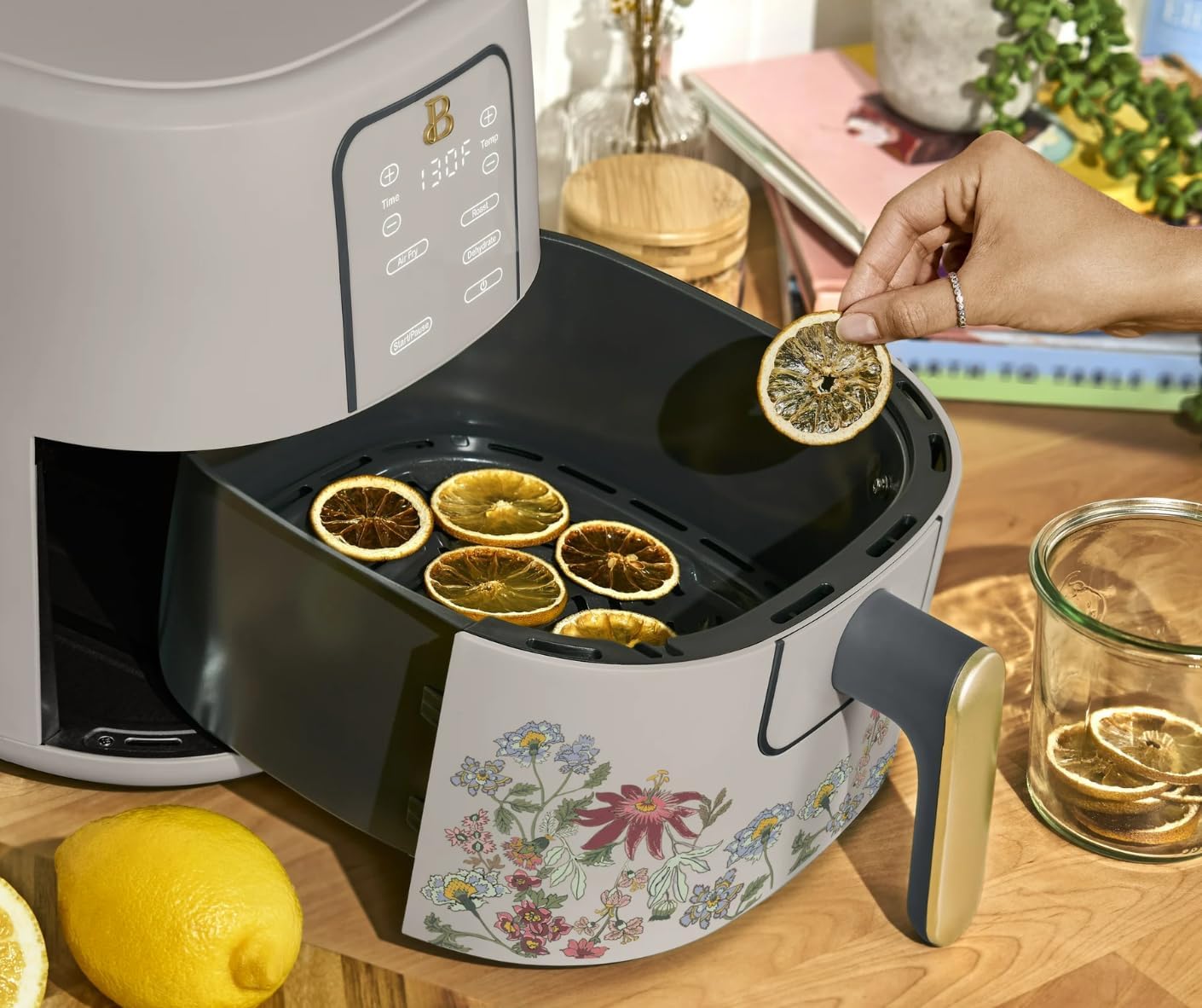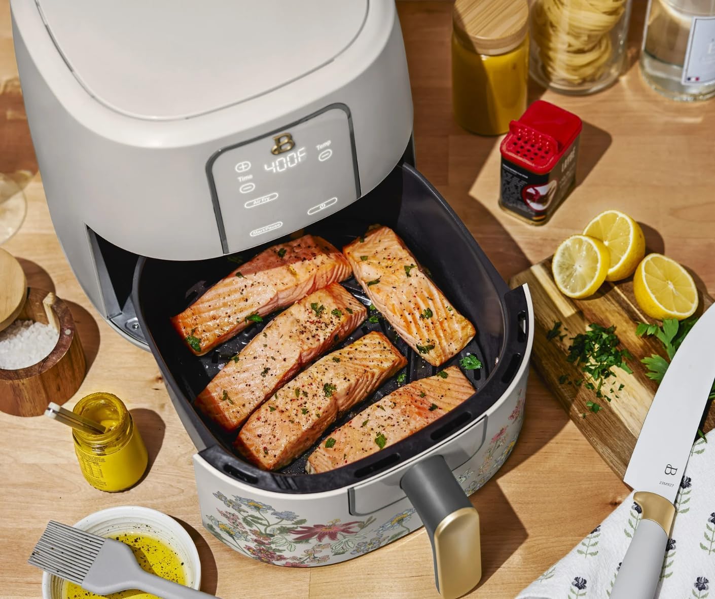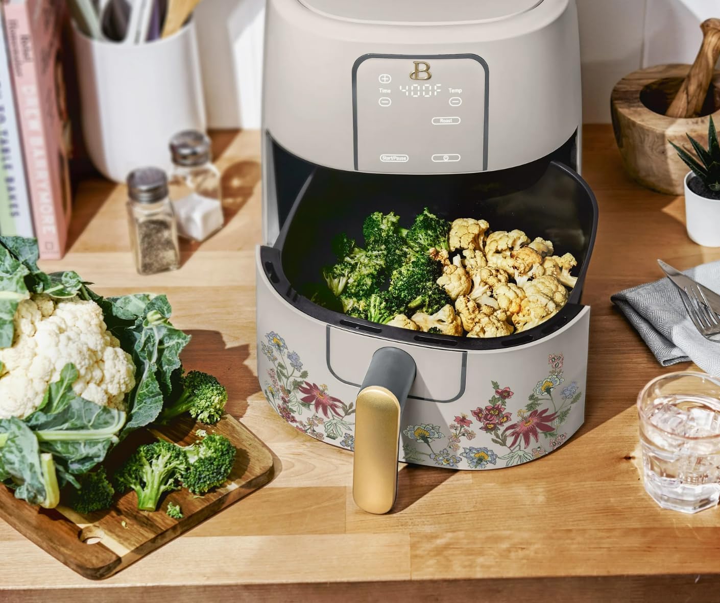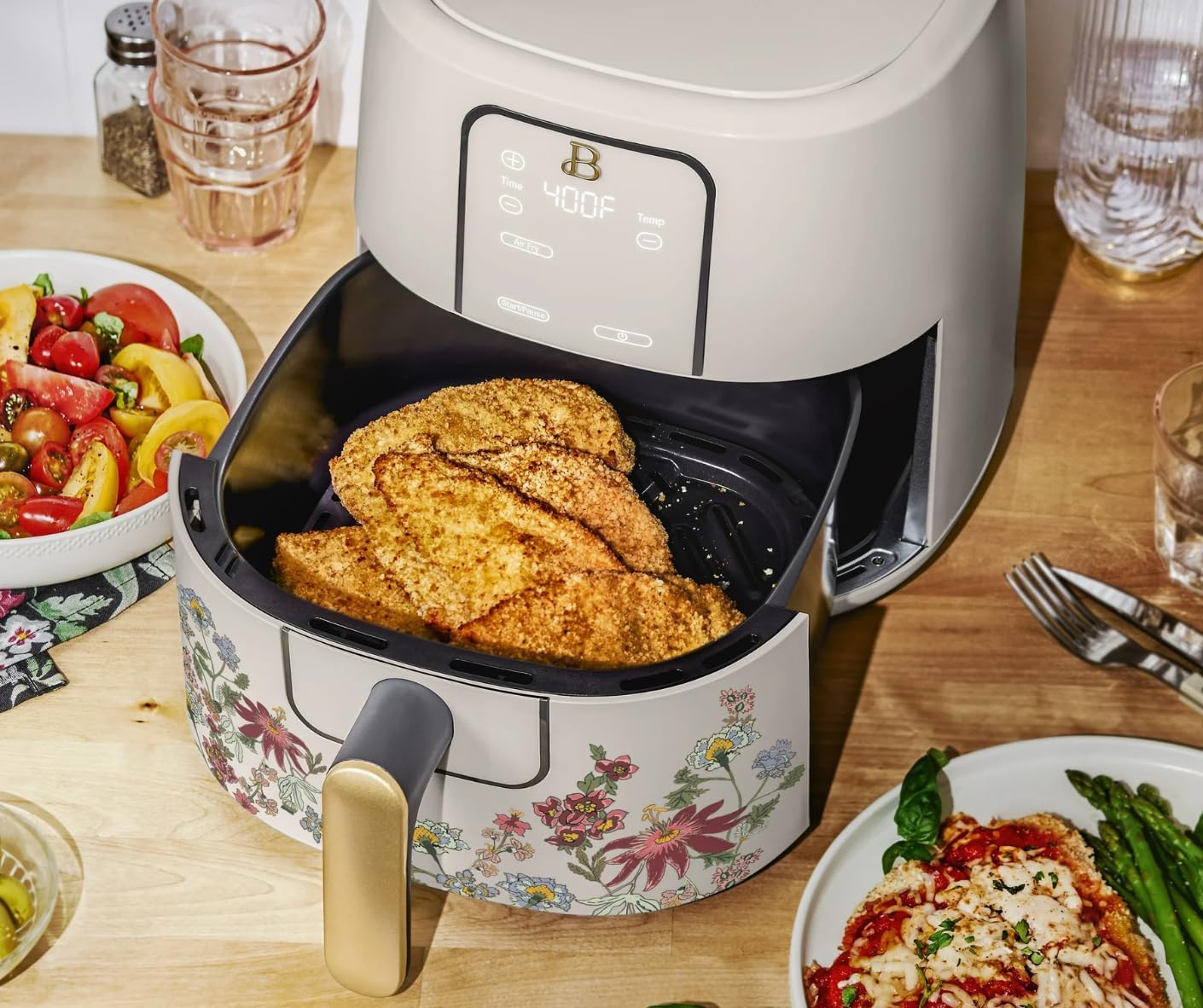 Beautiful 6 Qt Digital Air Fryer with TurboCrisp Technology, Touchscreen Display, Large Family Capacity (Wildflower Taupe)