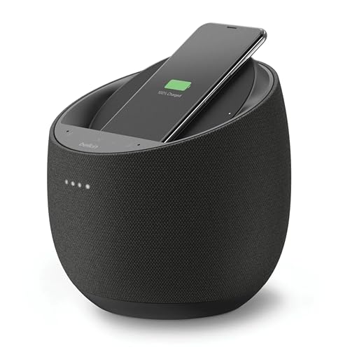 FAST WIRLESS CHARGING: The SoundForm Elite features integrated fast wireless charging for iPhone at 7.5W, Samsung at 9W, and Google at 10W. Vibration-canceling technology in the speaker ensures your device charges steadily without interruption.