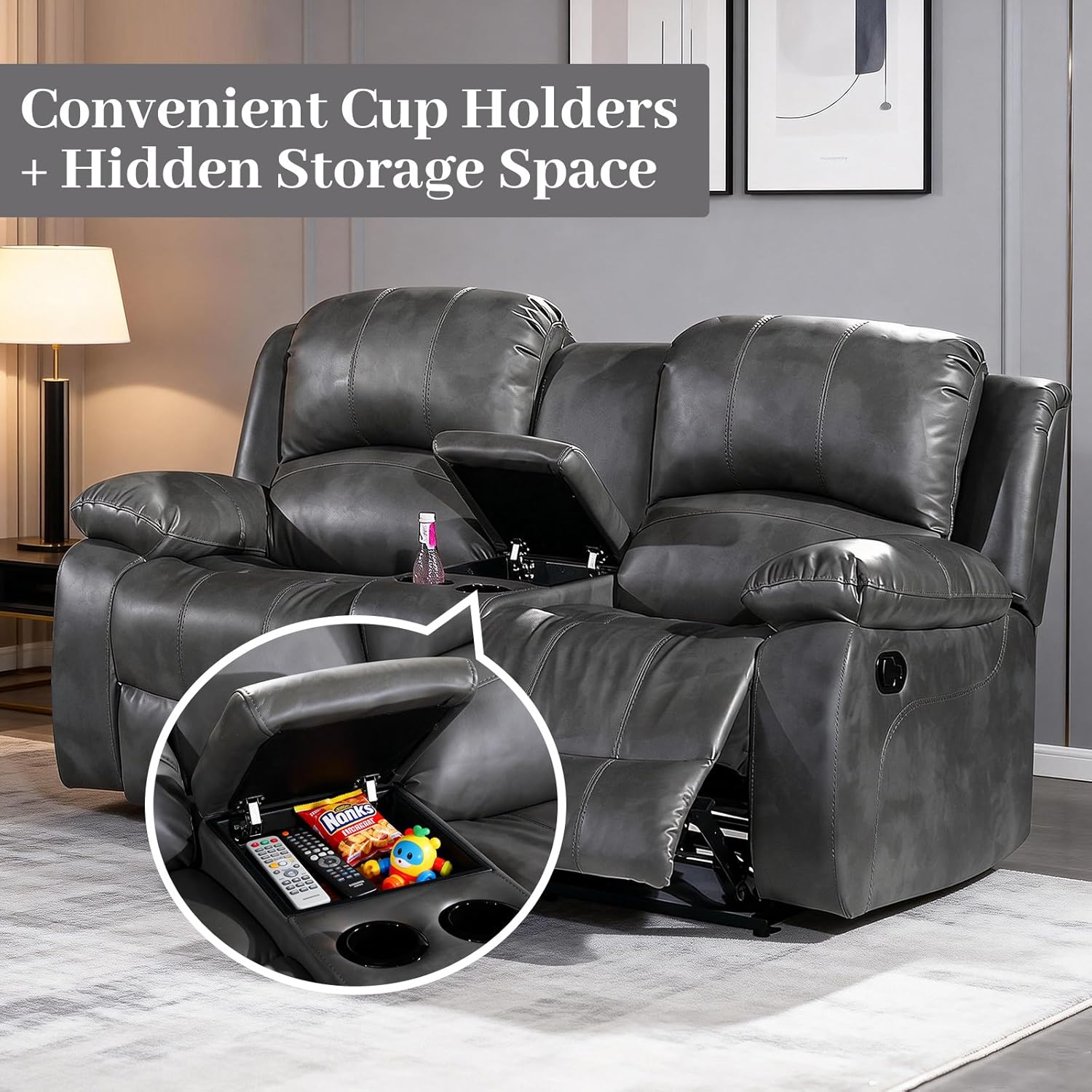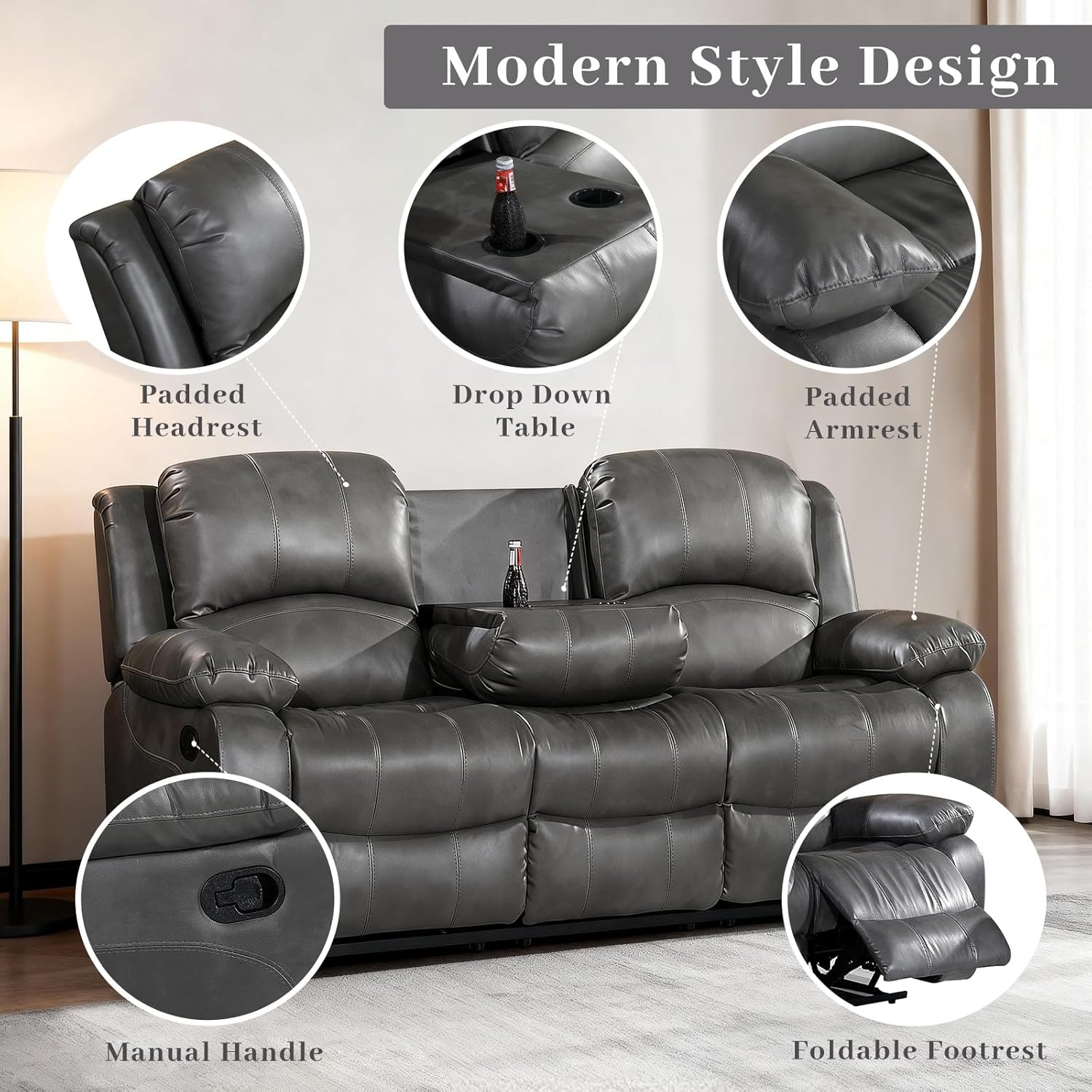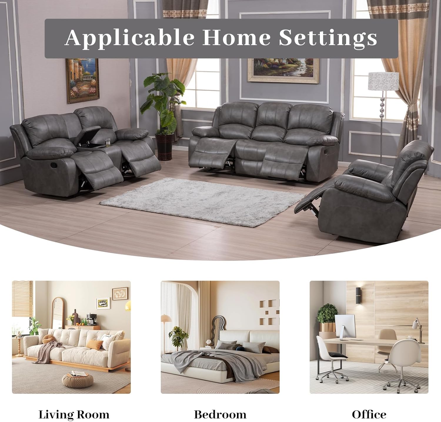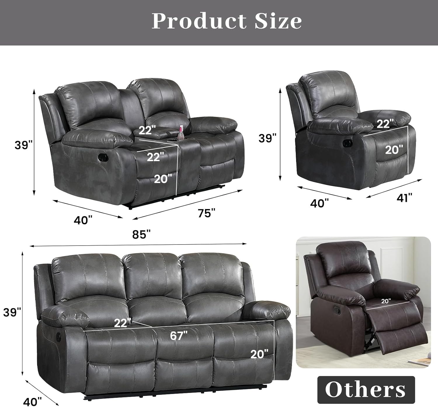Specification: Betsy Furniture 3PC Faux Leather Reclining Couch Set, Living Room Furniture Set, Sofa, Loveseat, Glider, 8018 Multiple Colors (Gray, Sofa+Loveseat+Chair)