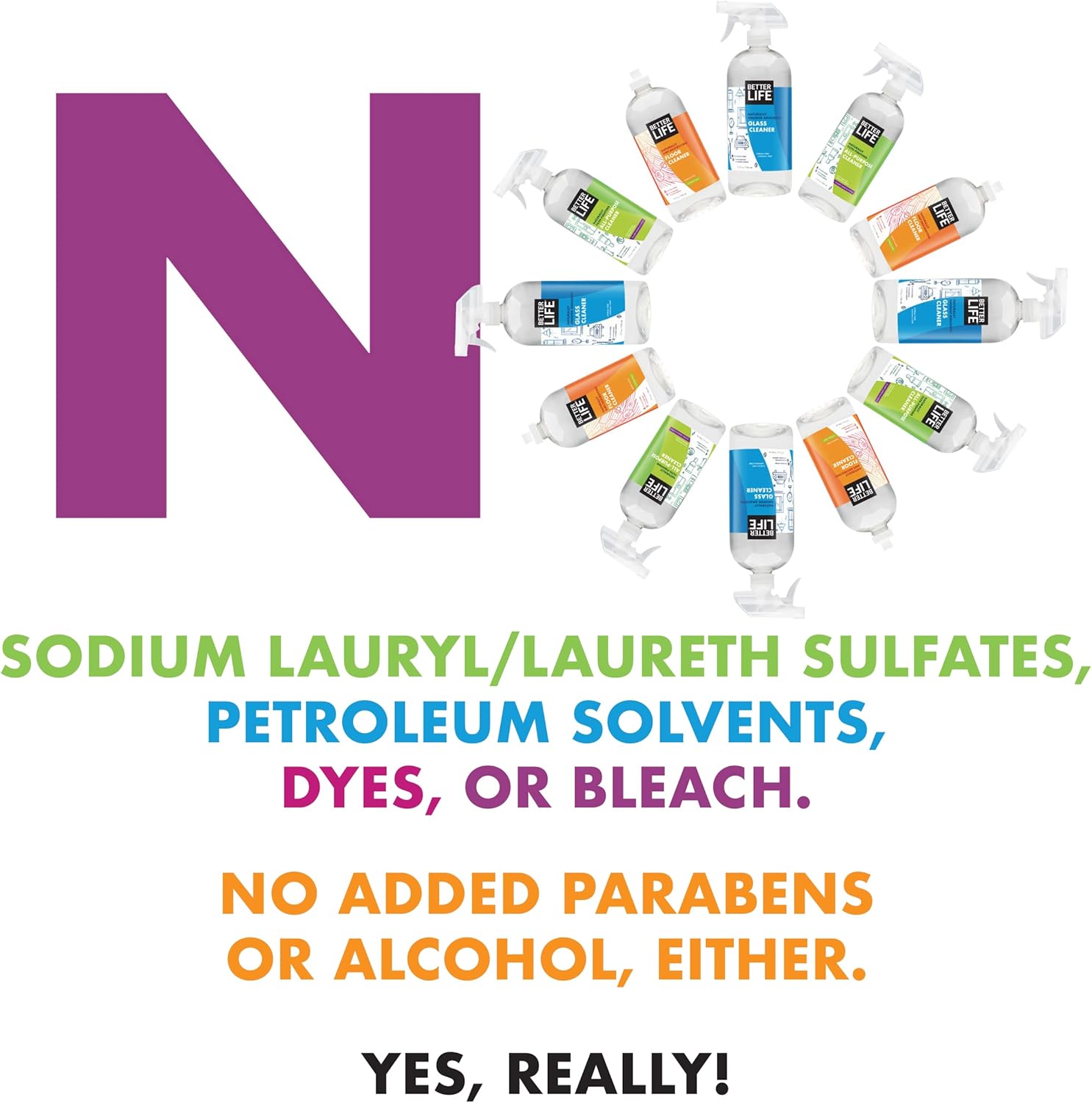 WORRY-FREE WIPING – Our all purpose cleaner spray is made with no petroleum solvents, chlorine or bleach, added alcohols, added parabens, SLS or SLES – making it gentler on your eyes, nose and skin.