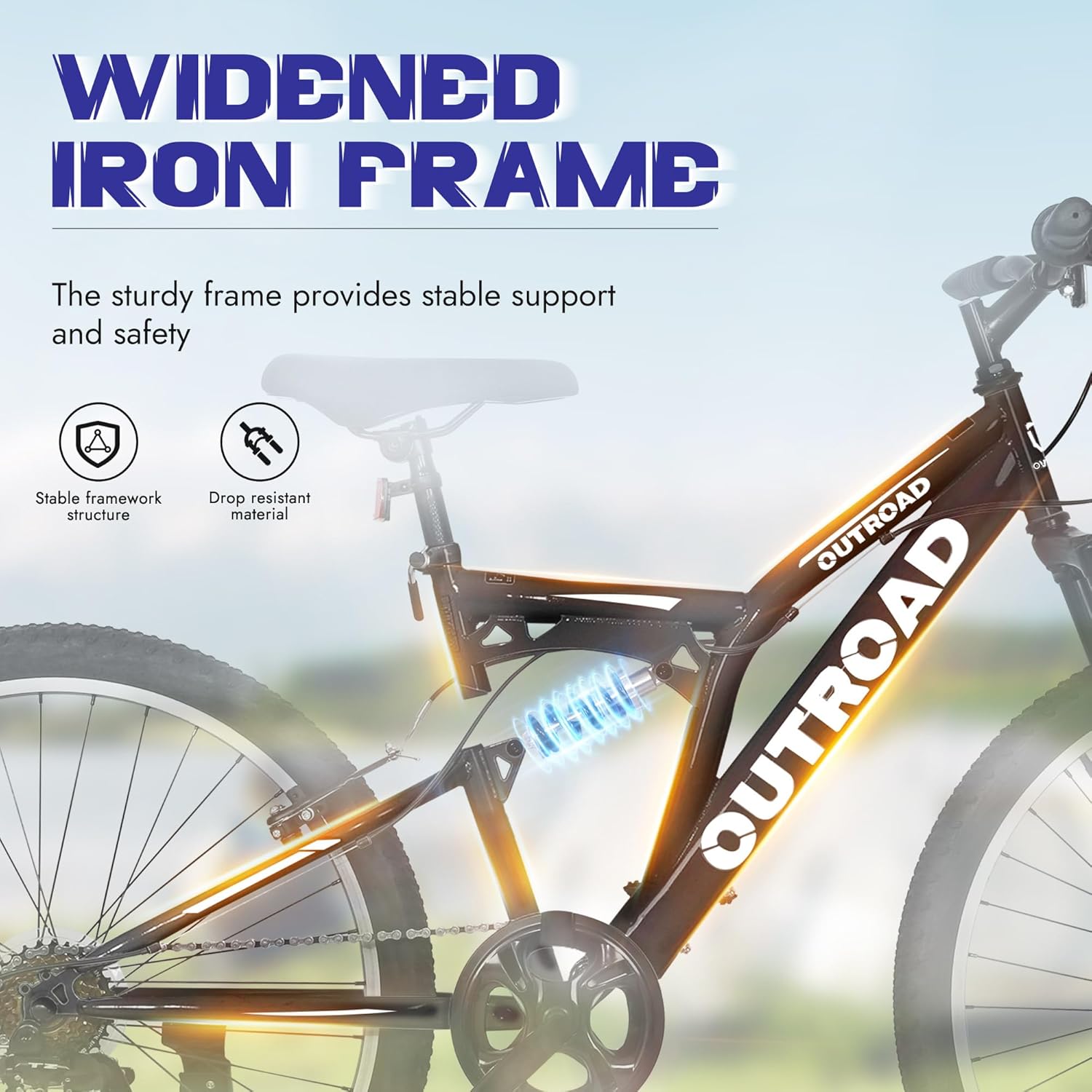 Dual suspension design: These outdoor bikes have full suspension shock absorption function, which can better resist impacts. Thickened shock absorbers help absorb impacts. Parallel bars can adapt to pressure road conditions. Greatly improving the comfort of cycling, allowing you to enjoy the fun of cycling and fall in love with it.