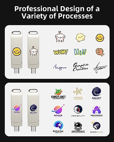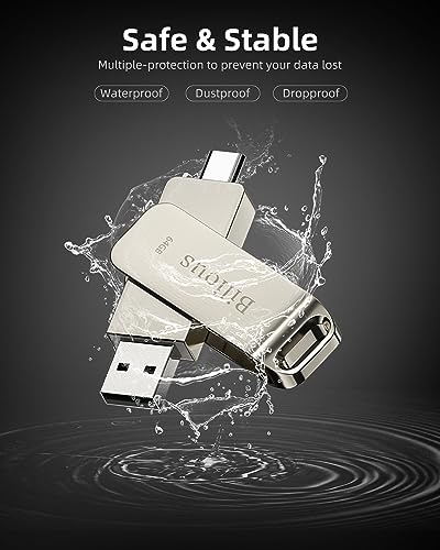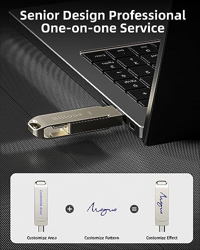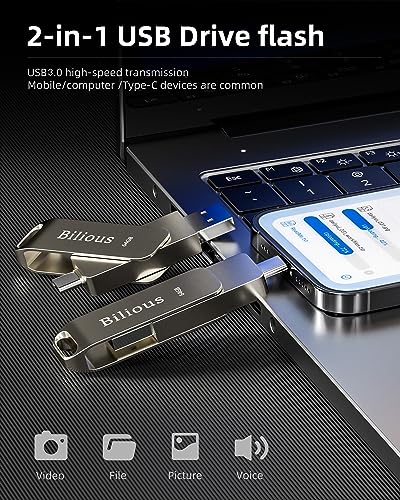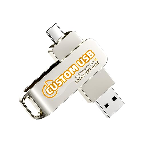 Bilious Custom Personalized USB C Flash Drive 50 Pack 32GB/64GB/128GB/256GB, Metal 360° Rotation Style USB 3.0 Thumb Drive, 2 in 1 Dual Portable Memory Stick, Waterproof Jump Drive