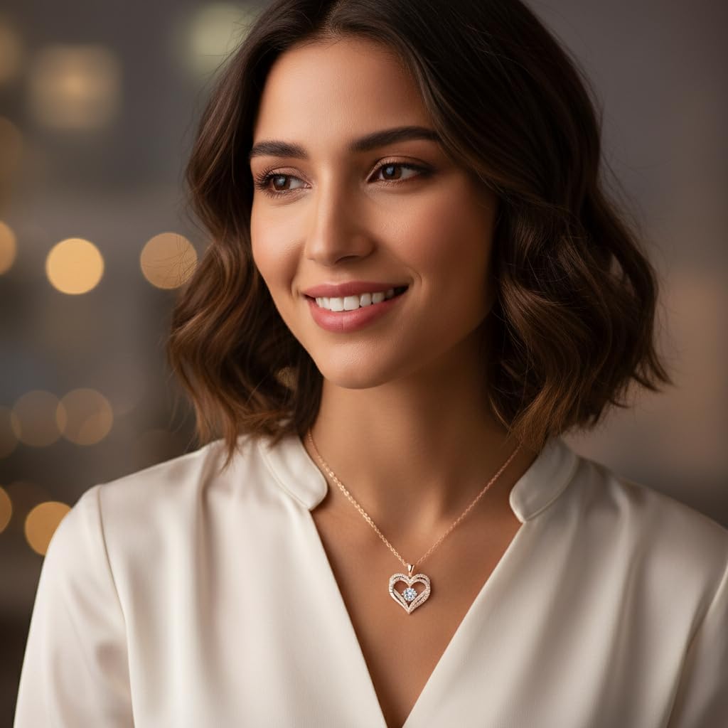 Layered Heart Pendant: The pendant features a beautiful, layered heart design. A sparkling cubic zirconia sits at the center, surrounded by a gracefully swirling open-frame heart. Brilliant Accents: The outer heart is meticulously adorned with a pave setting of small, clear accent stones, which create a radiant shimmer and enhance the overall brilliance of the piece. Heartfelt Engraving: The inner frame of the pendant is elegantly inscribed with the timeless message “I love you always and forever,” making it a deeply personal and cherished gift for a loved one.