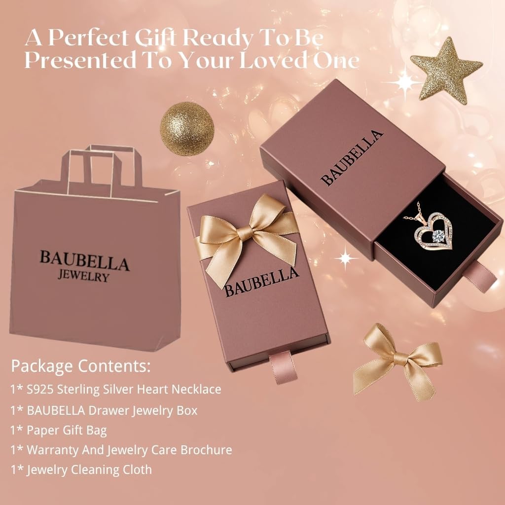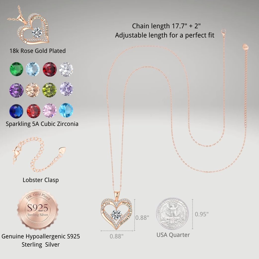 Birthstone Heart Necklace for Women Wife Girlfriend Mom Daughter Gifts S925 Silver Jewelry For Anniversary Rose Gold Gifts For Birthday Christmas Mothers Valentines Day