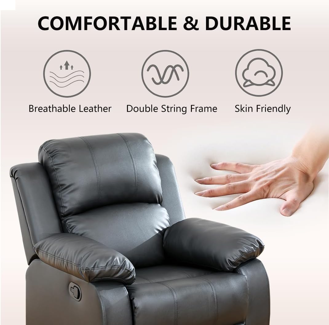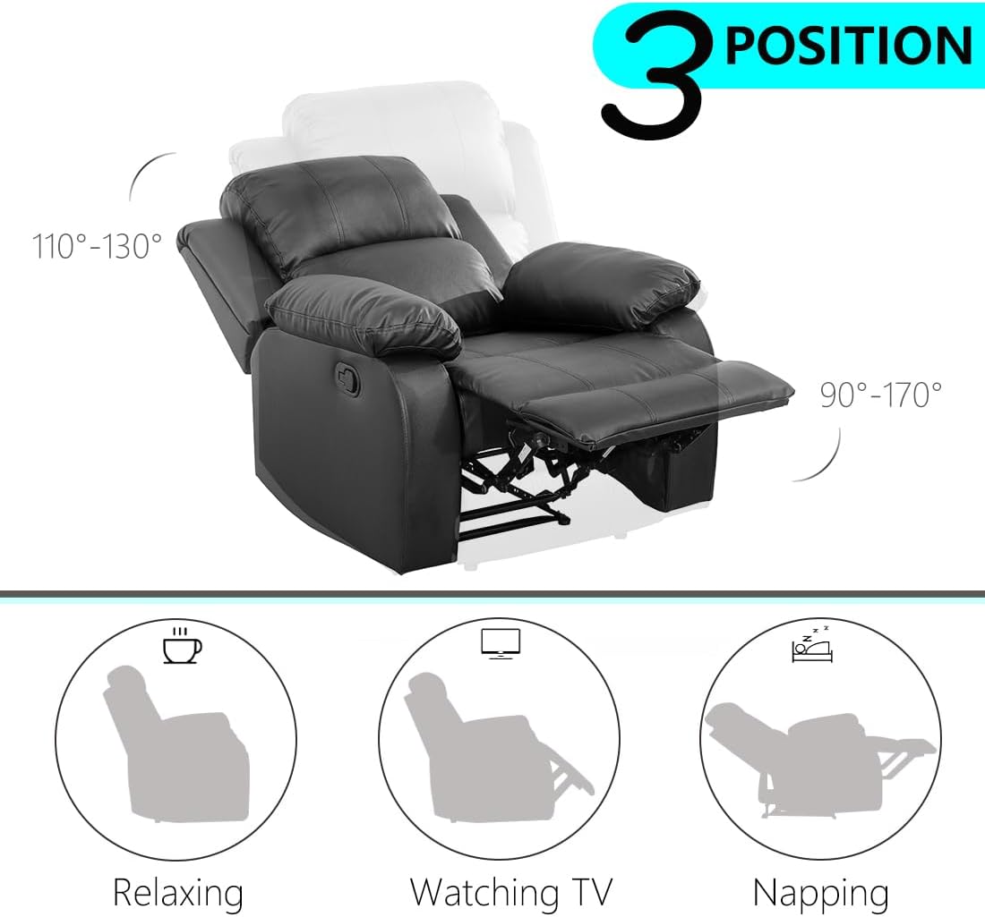 Side Reclining Design: Each side recliner seat operates independently, simply pull the lever to back recline (110°–160°) while footrest to up recline (90°–170°). The extendable footrest lifts smoothly to support your legs, improving circulation for ultimate relaxation. Perfect for couples with different preferences: one can lounge fully while the other sits upright. Whether reading, napping, or watching TV, customize your position for maximum comfort.