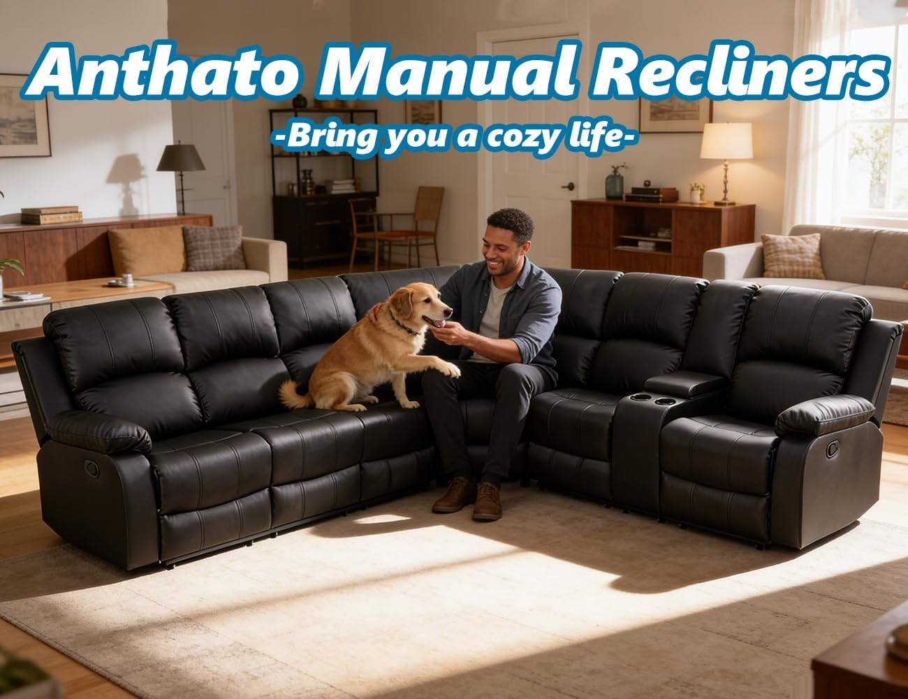 Premium Durability & Support: Built to last, this recliner combines a solid hardwood frame with a reinforced steel mechanism for exceptional stability. The high-resistance faux leather upholstery resists daily wear, and fading, maintaining its look for years. Each seat supports up to 330 lbs, making it ideal for all body types. A long-term investment in comfort, this L shape sectional reclining sofa offers both comfort and style for households.