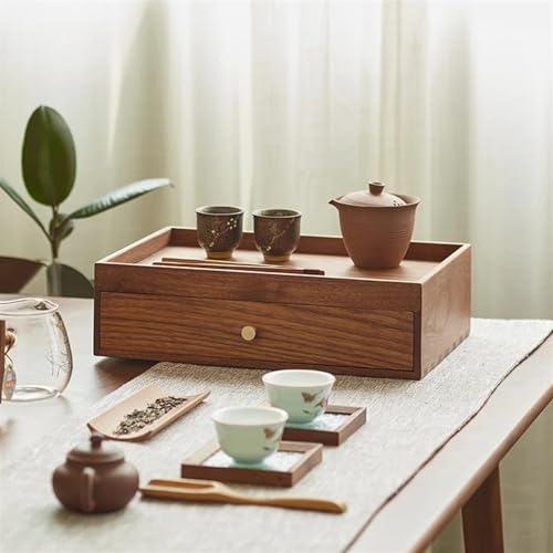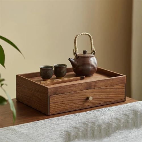 Black Walnut Ring Box – Solid Wood Desktop Storage for Jewelry, Cosmetics, and Tea Cake – Elegant Drawer Organizer for Office and Home Decor