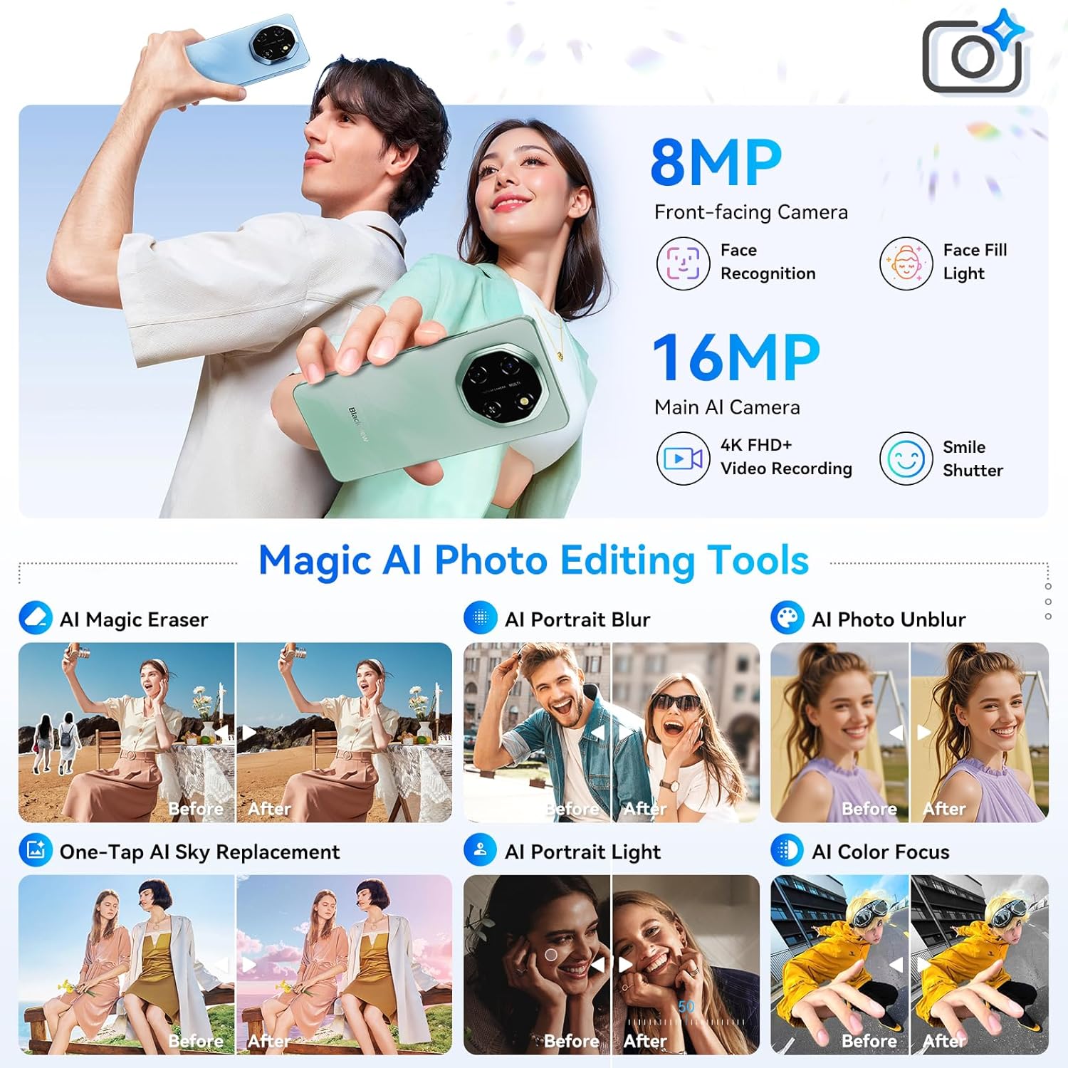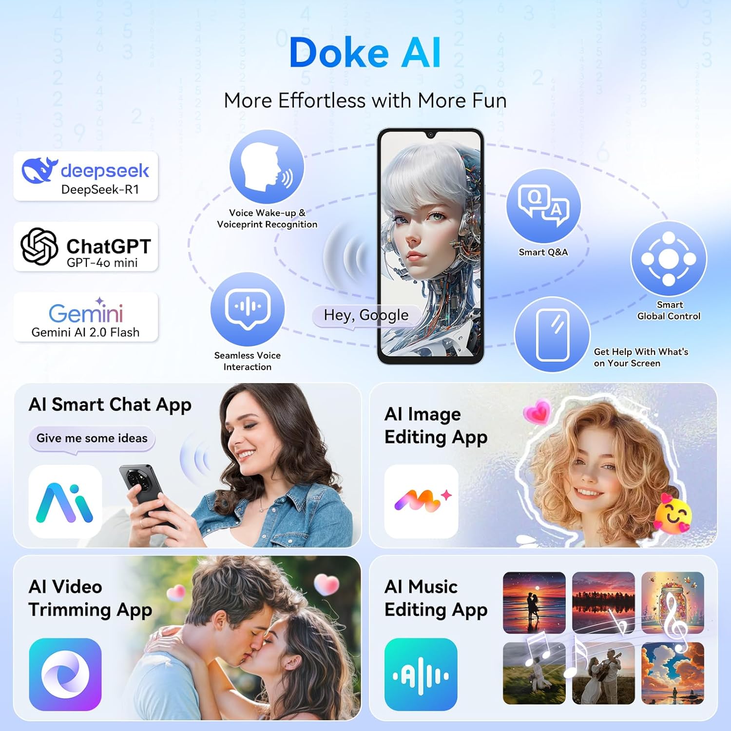 【✨ Make Life Easier with Smart AI Features】Unleash your creativity and productivity with the phone’s integrated AI tools. From editing photos with ImageX and generating videos with VidGen to composing music with Soundle and having natural conversations with Hi Doki, the built-in AI assistant helps you accomplish more. This unlocked smartphone’s built-in AI assistant is here to help. From meetings to schoolwork, it keeps you productive, focused, and efficient—so you can get more done with less effort.