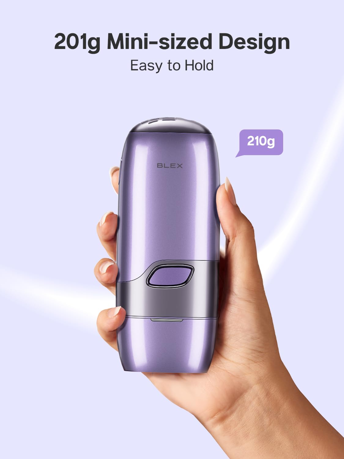 Blex Mini Laser Hair Removal for Women and Men, IPL Laser Hair Removal Device, 201g Mini-Sized Design, 2 in 1 with Skin Rejuvenation, Painless at-Home Hair Remover, Purple